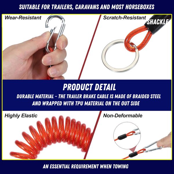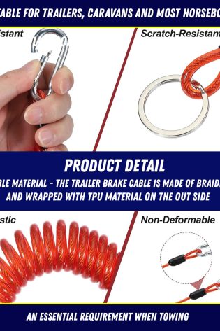 1m Breakaway Brake Safety Cable 4mm Red PVC Trailer Caravan Quick Release Clip