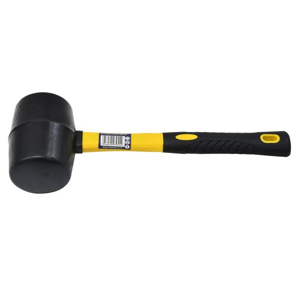 16oz Rubber Hammer Mallet Black Fiberglass Handle Durable Comfort Grip 320mm for Camping Golf Tools