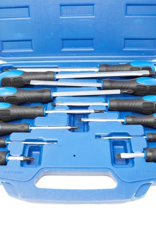 Screwdriver Set Heavy Duty 12 Piece Engineers Mechanics With Hex Bolsters +Case