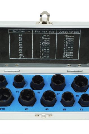 10 PC Damaged Nut Bolt Remover Set 9-19mm Broken Bolt Removal Stud Extractor