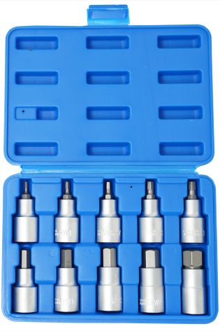 10pc 1/2″ Drive Hex Sockets Allen Key Bit Tool Socket Set H4 – H19mm Cr-v Steel