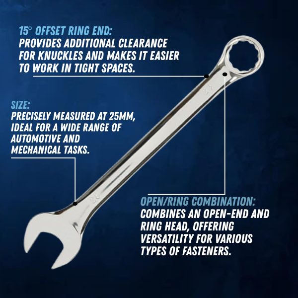 24mm Combination Spanner Wrench – Chrome Vanadium Steel Metric Fixed Head Open End Spanner Hand Tool