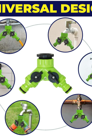 2 Way Hose Pipe Splitter Connector Adaptor For Garden Tap Green Home Patio