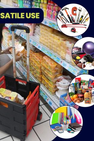 Foldable Shopping Trolley 25kg – Wheeled Grocery Cart with Telescopic Handle & Folding Crate