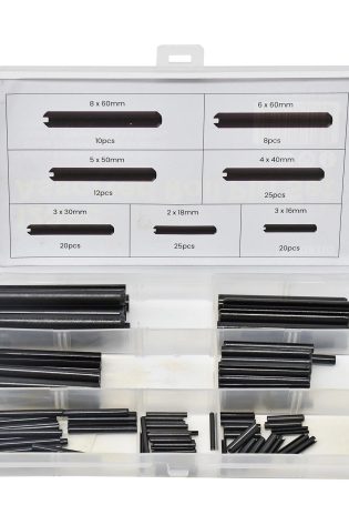 120Pc Assorted Steel Roll Pins Set Spring Dowel C Pins Mixed Sizes M1.6–M9.5 with Storage Case