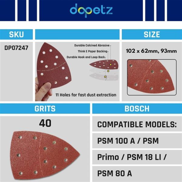 10pcs Sanding Sheets 102x62mm 93mm 40 Grit Hook Loop Sandpaper for Multi Sander 11 Hole