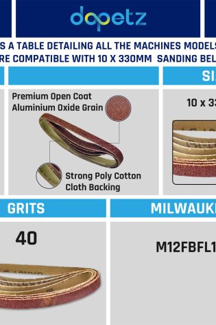5 Pack Sanding Belts 330mm x 10mm (40 Grit) Coarse Sander Sheets Sanding Belts
