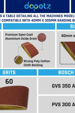 5 Pack Sanding Belts 40mm x 305mm (60 Grit) Coarse Sander Sheets Sanding Belts