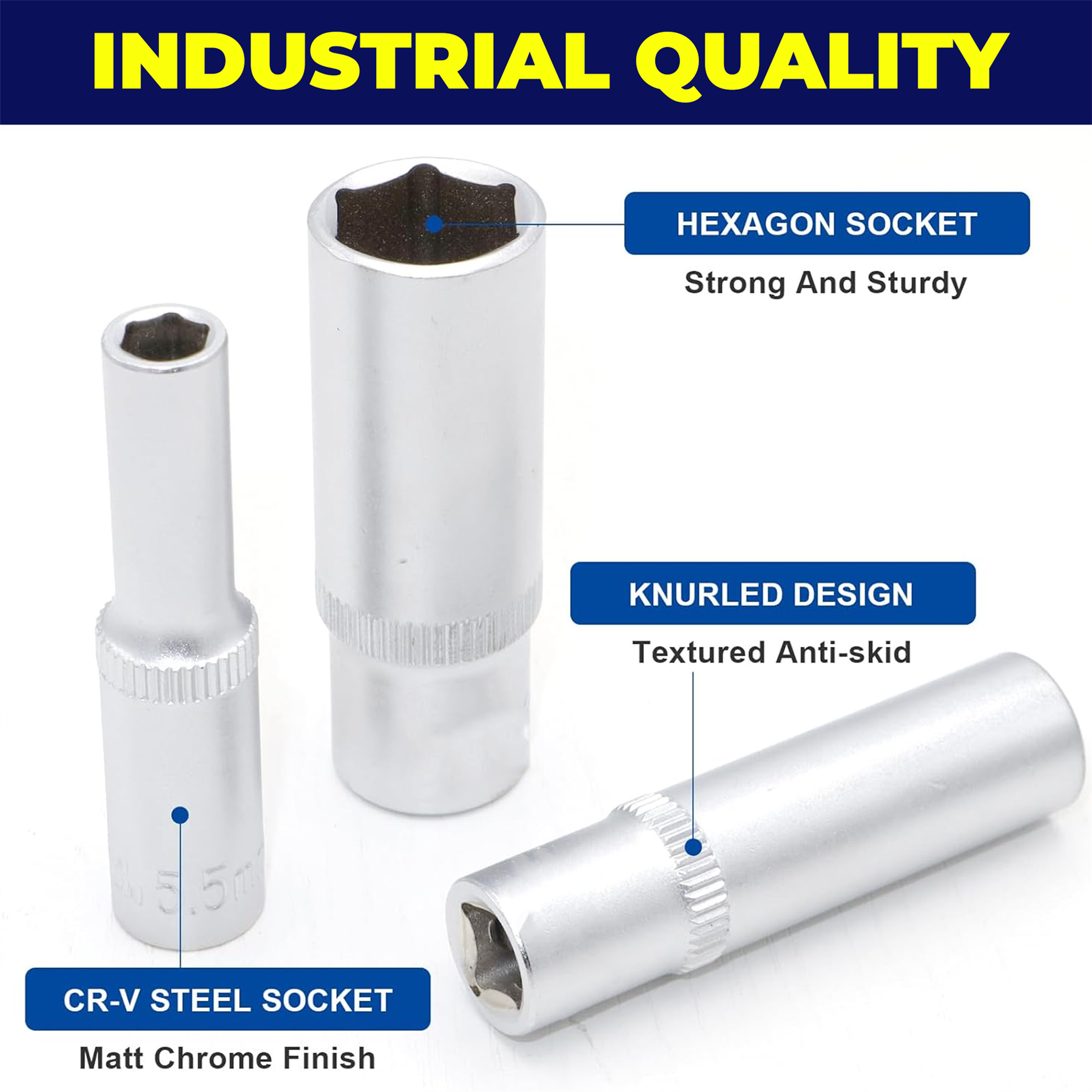 1/4″ Socket Set Deep Drive 11pc 4-13mm Deep Sockets Rail Cr-v Long Reach 6PT Hex