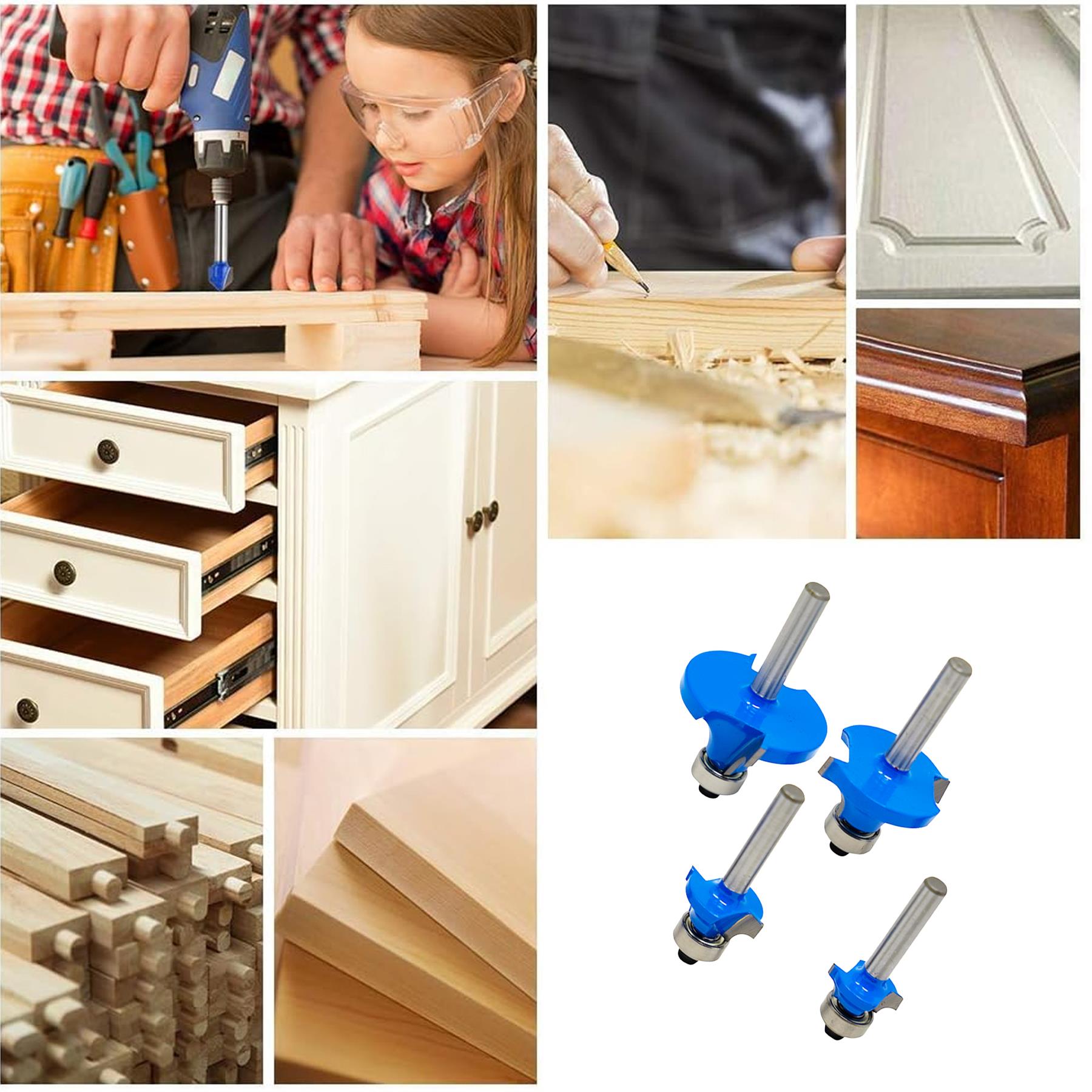 1/4″ Shank Round Over Router Bit Set – 4Pc Woodworking Cutter