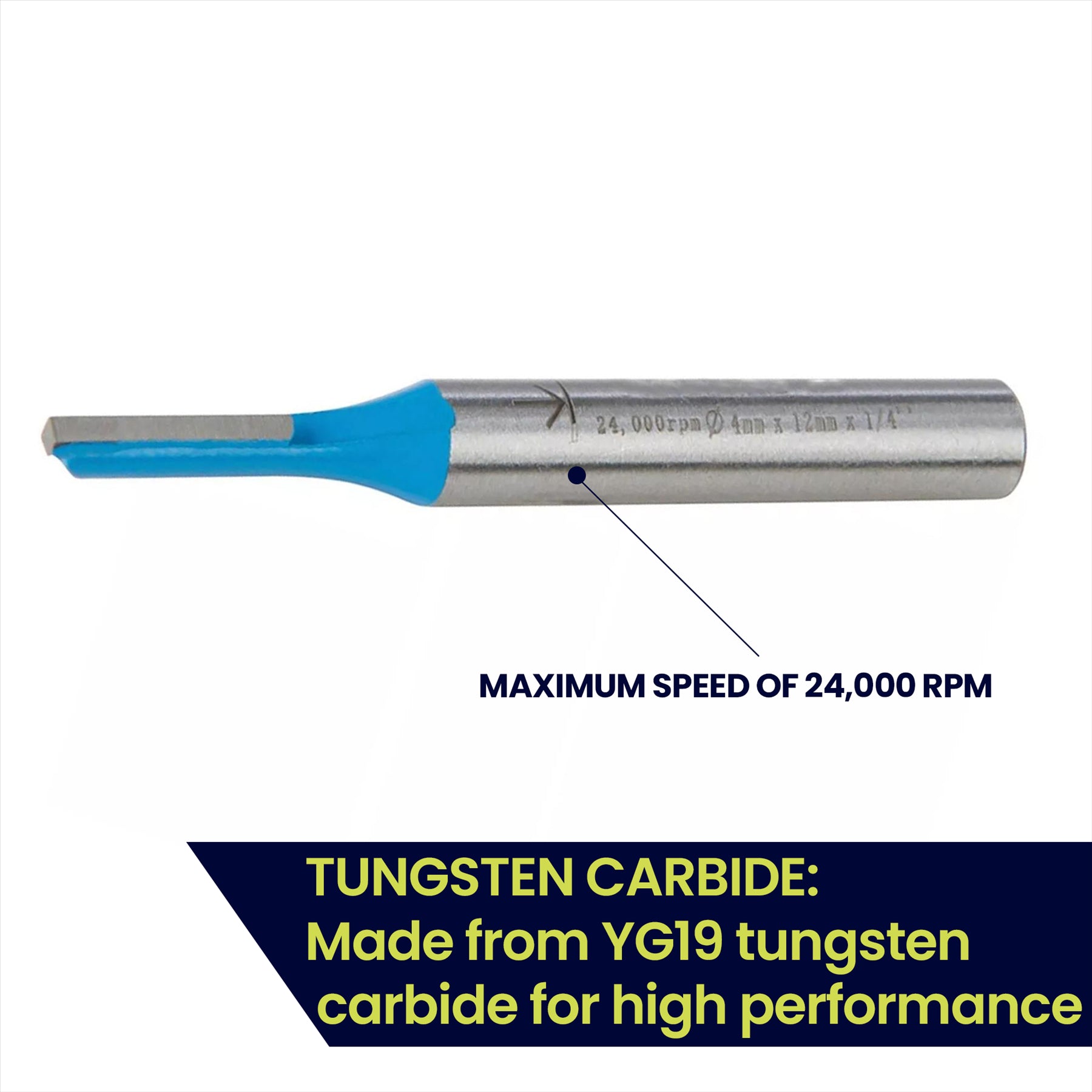 • High Precision Cutting: Metric router cutter sized 4 x 12mm, ideal for accurate and detailed woodworking tasks.