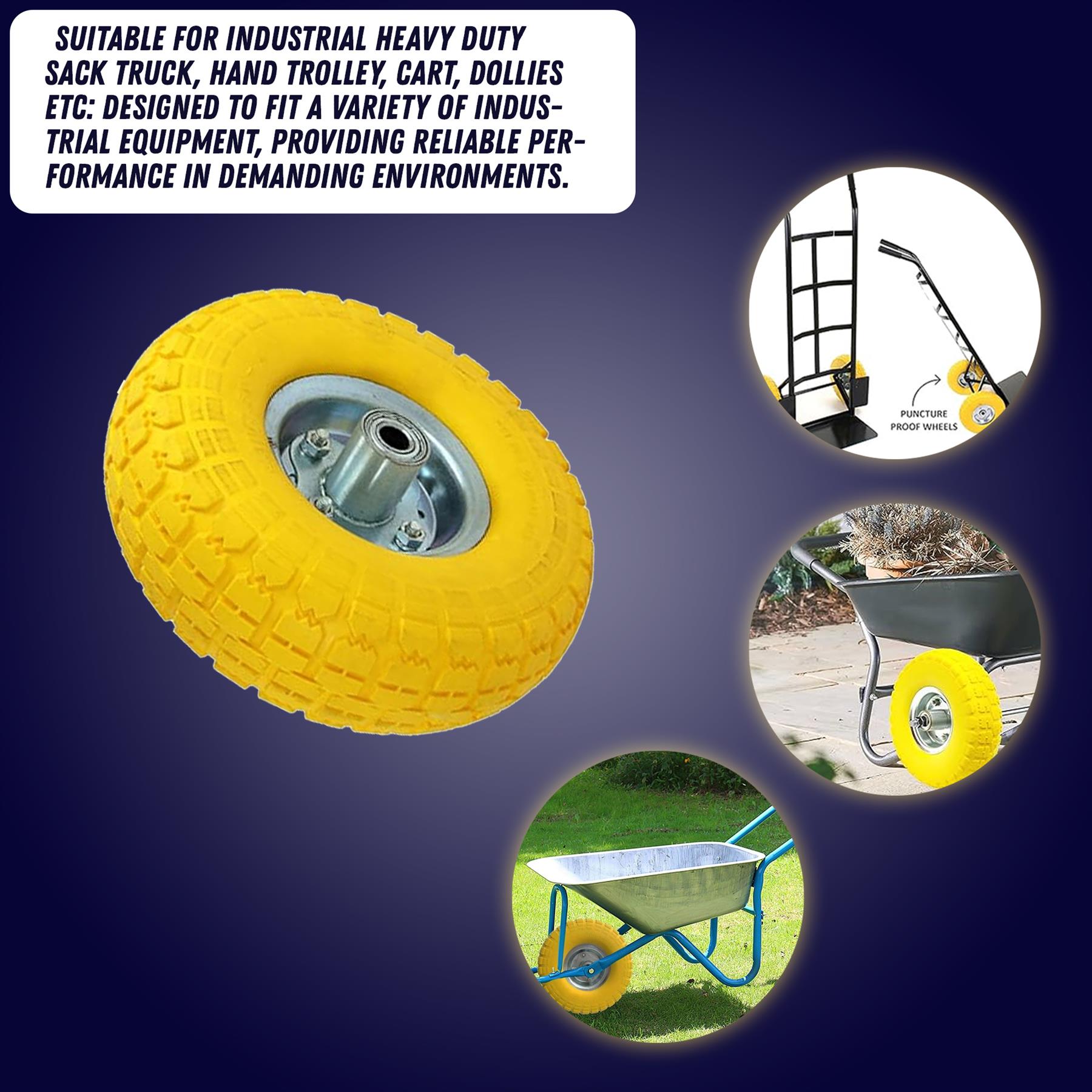 10″ Yellow Puncture Burst Proof Sack Truck Trolley Wheel & Axle