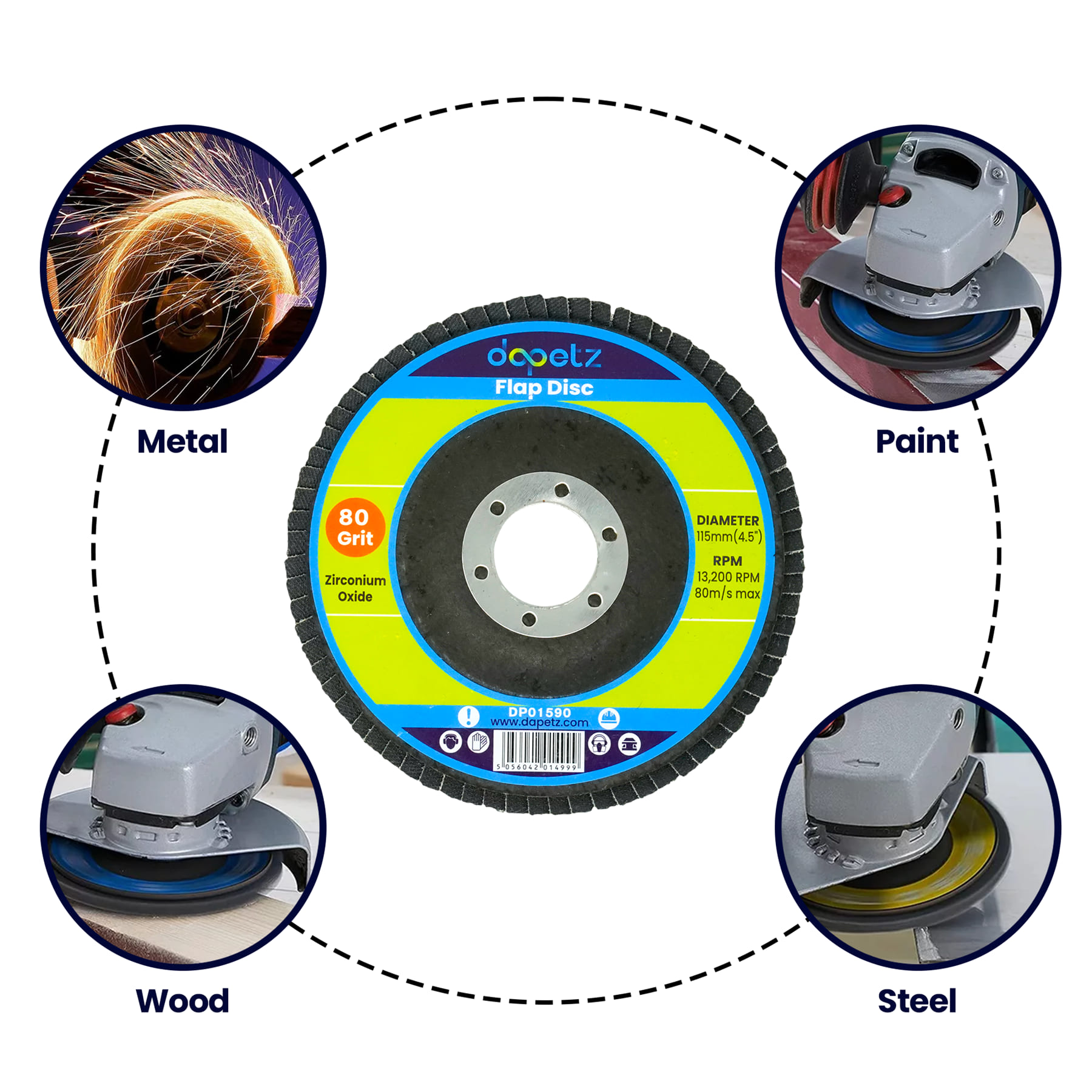 10x Flap Discs 115mm Sanding 80 Grit Grinding Wheels Disc 4.5″ Zirconium Oxide
