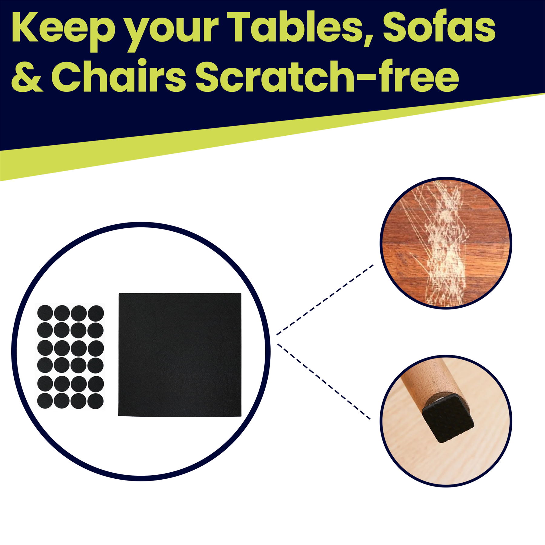 • Self-Adhesive Felt Pads: Easy peel-and-stick design allows quick application without tools or mess.