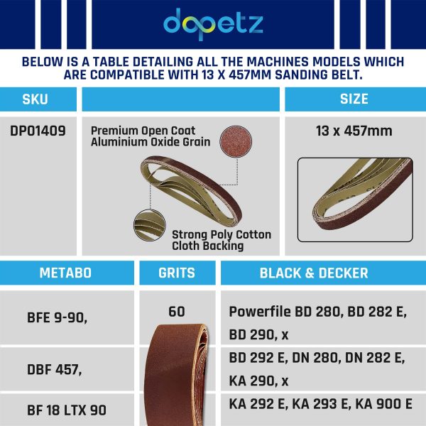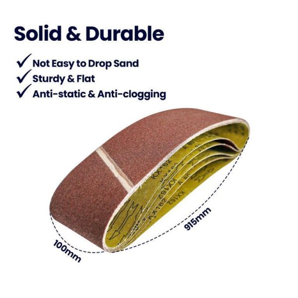 QUANTITY & SIZE – Pack includes 5 sanding belts, each measuring 330mm x 10mm, designed to fit all standard 330mm x 10mm belt sanders. Compatible with brands such as Black & Decker, Performance Power, Peugeot, Skill, and Stayer.