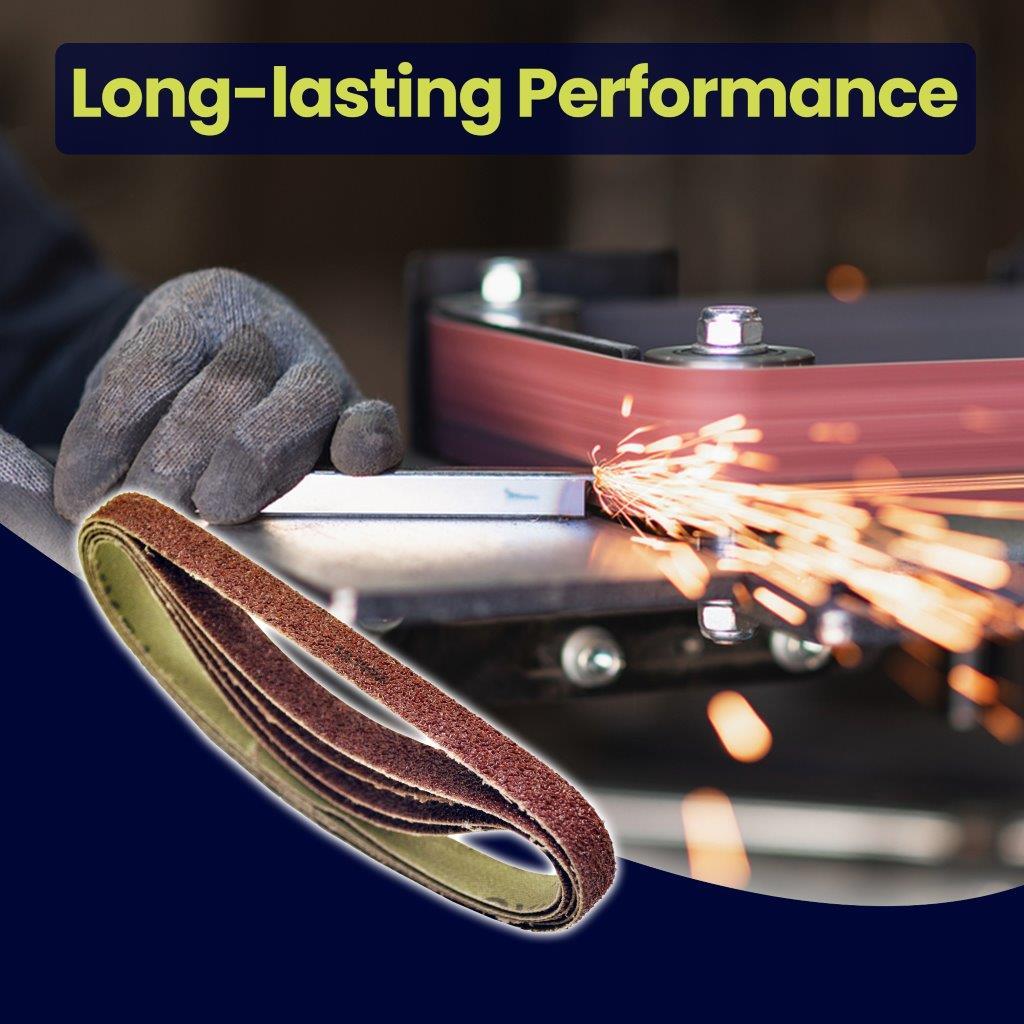 HIGH DURABILITY – Flat, firm belt interface resists breaking under pressure. Even grit distribution ensures consistent and reliable performance.