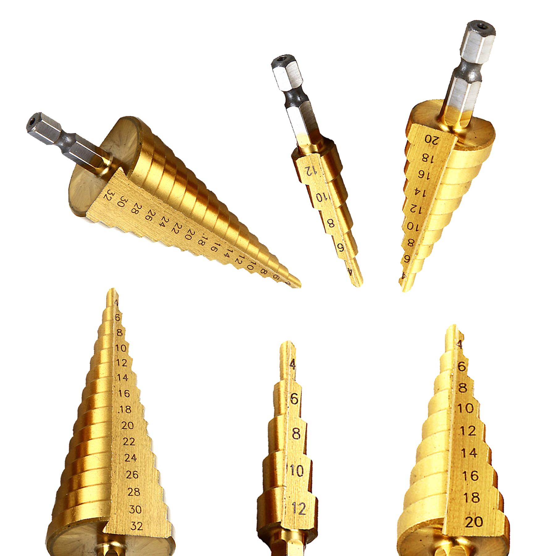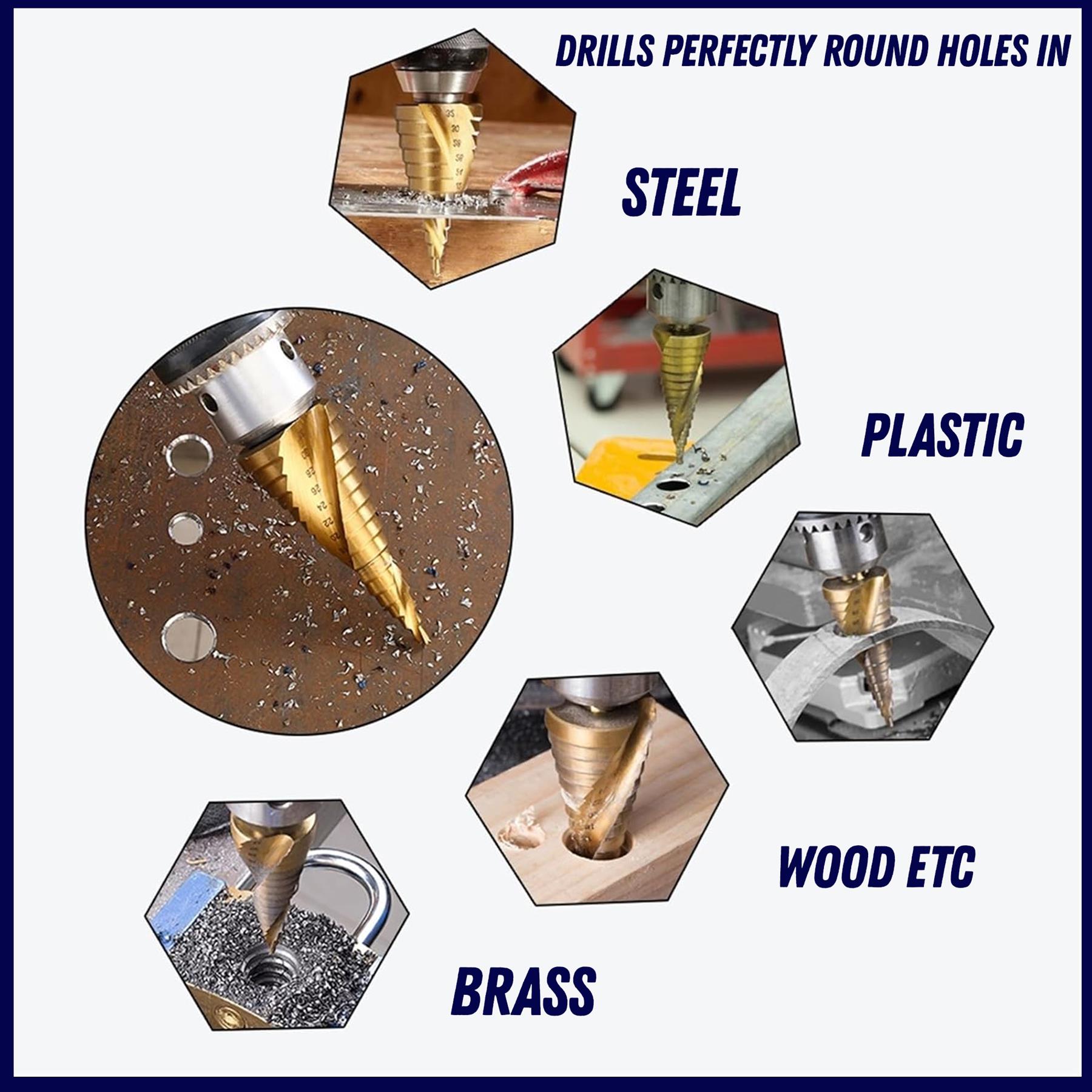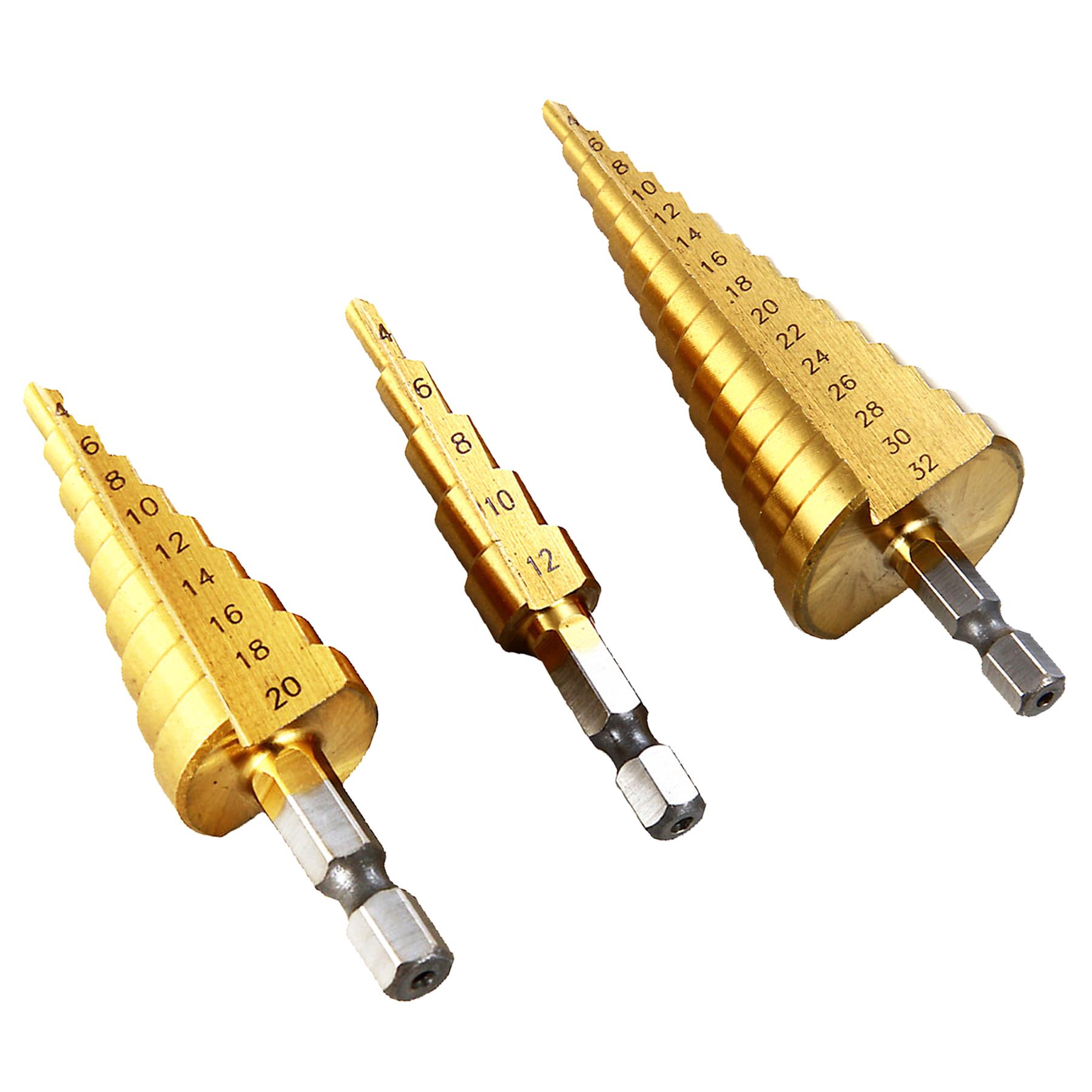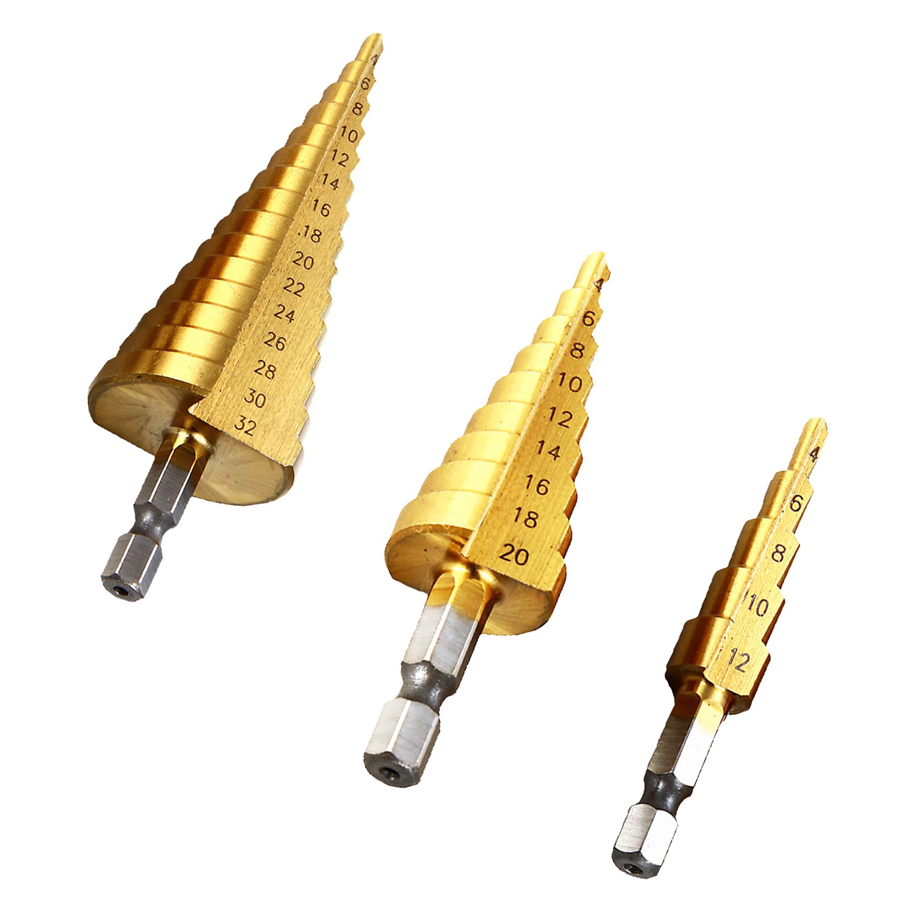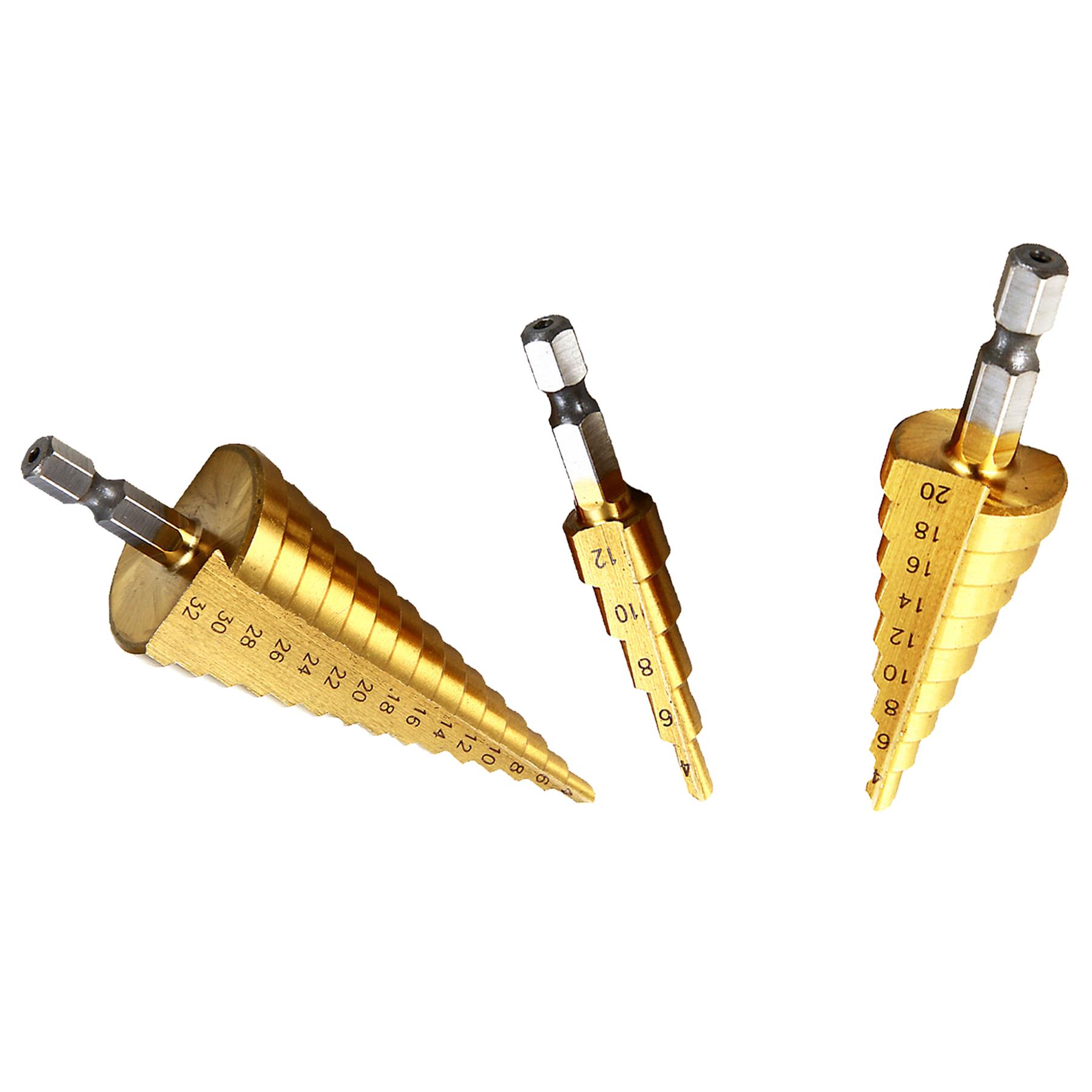 3PC HSS Step Cone Drill Titanium Coated Metal Hole Cutter Bit Set