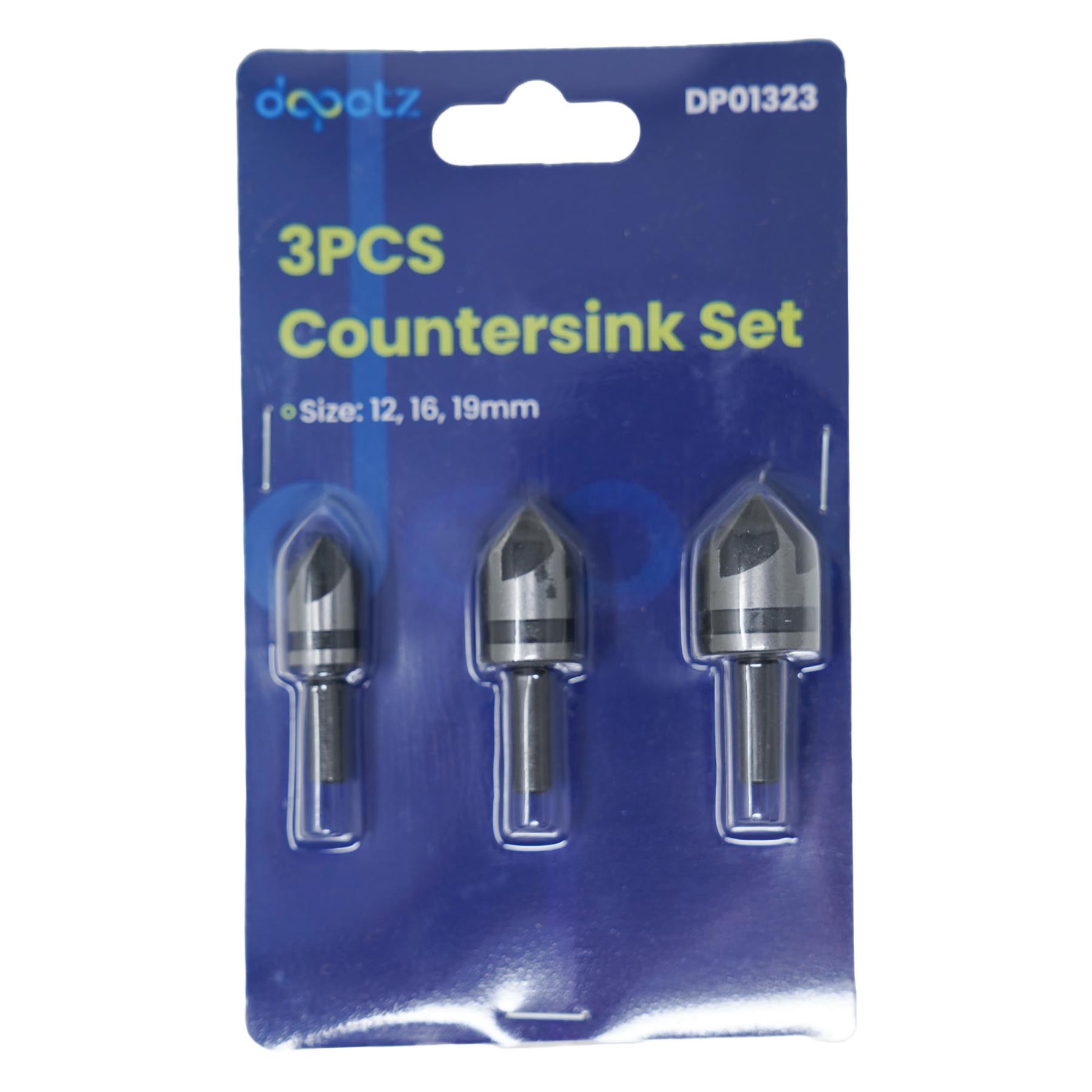 - HIGH-QUALITY COUNTERSINK DRILL BITS – Includes three sizes (12mm, 16mm, 19mm) for precise chamfering on various materials.