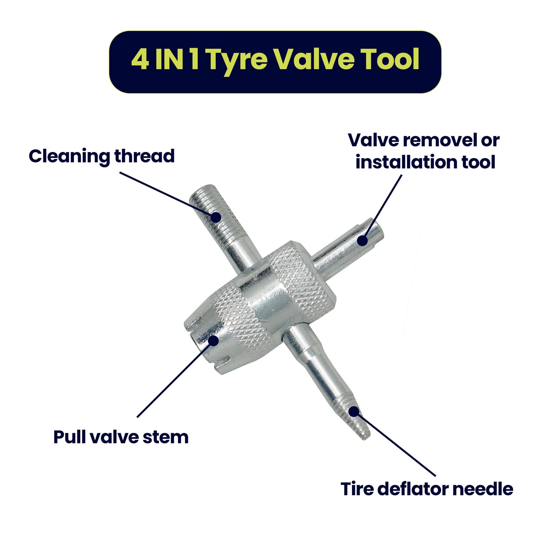 4 Way Valve Core Remover Tool Tire Valve Tire Stem Core Tyre Valve Removers Tool for Car Motorcycle