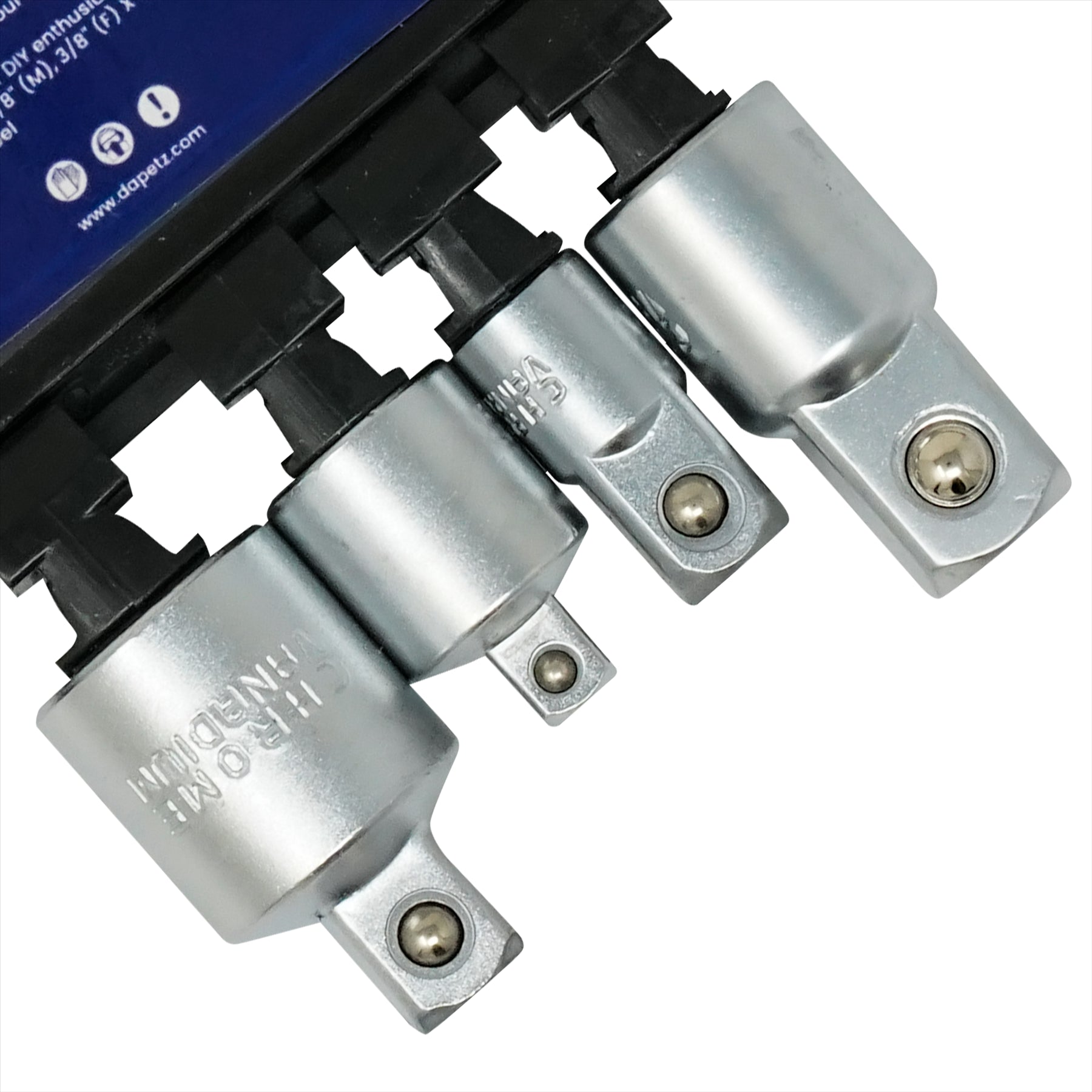 High-Quality Adapters – Features female-to-male adapters in 1/4″, 3/8″, and 1/2″ drive sizes for versatile use.