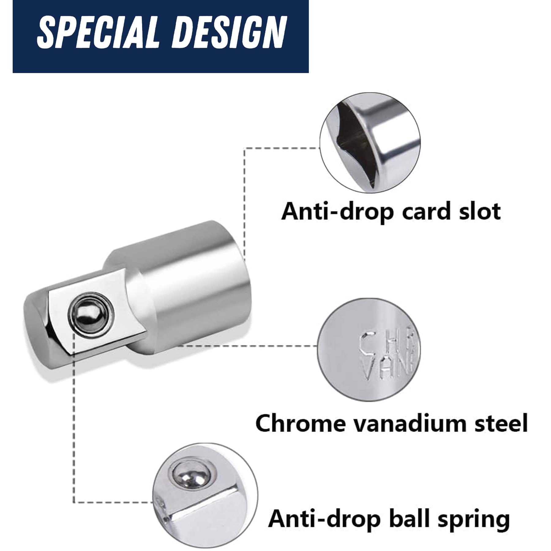 Versatile Usage – Allows easy mixing and matching of drive sizes across sockets, ratchets, extension bars, and accessories.