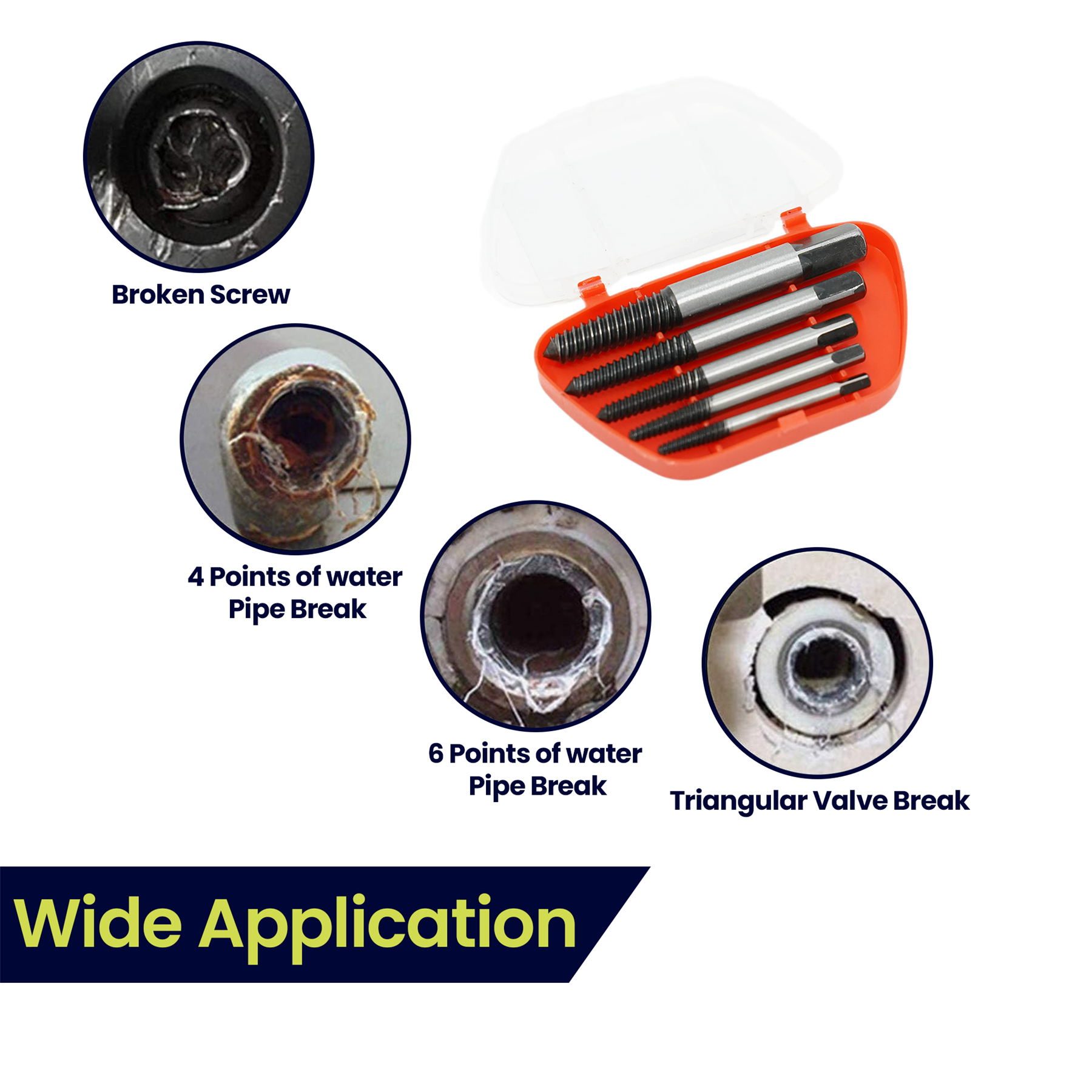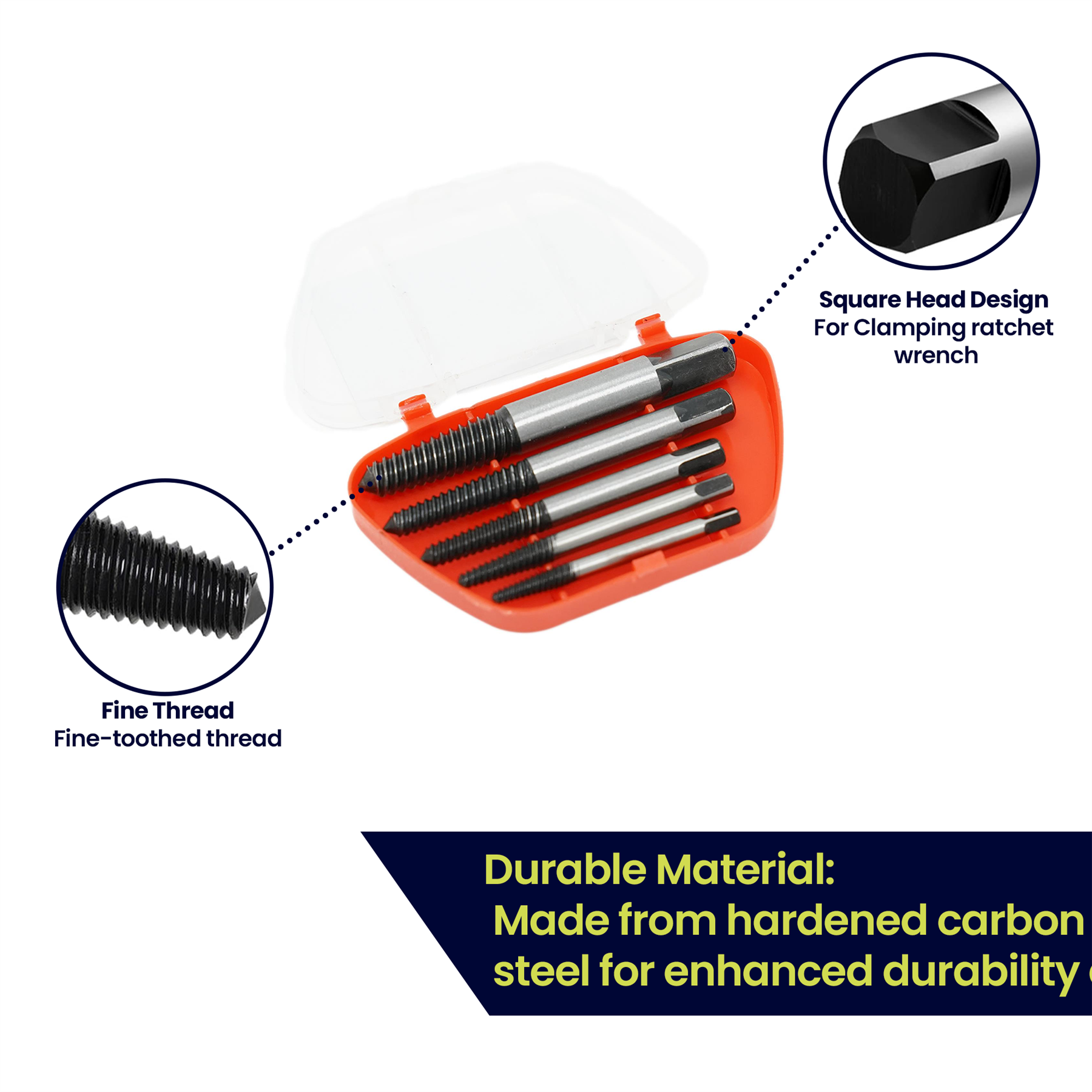 Efficient Extraction Design – Reverse spiral, tapered, coarse threads grip firmly for fast and effective removal of broken screws and bolts.