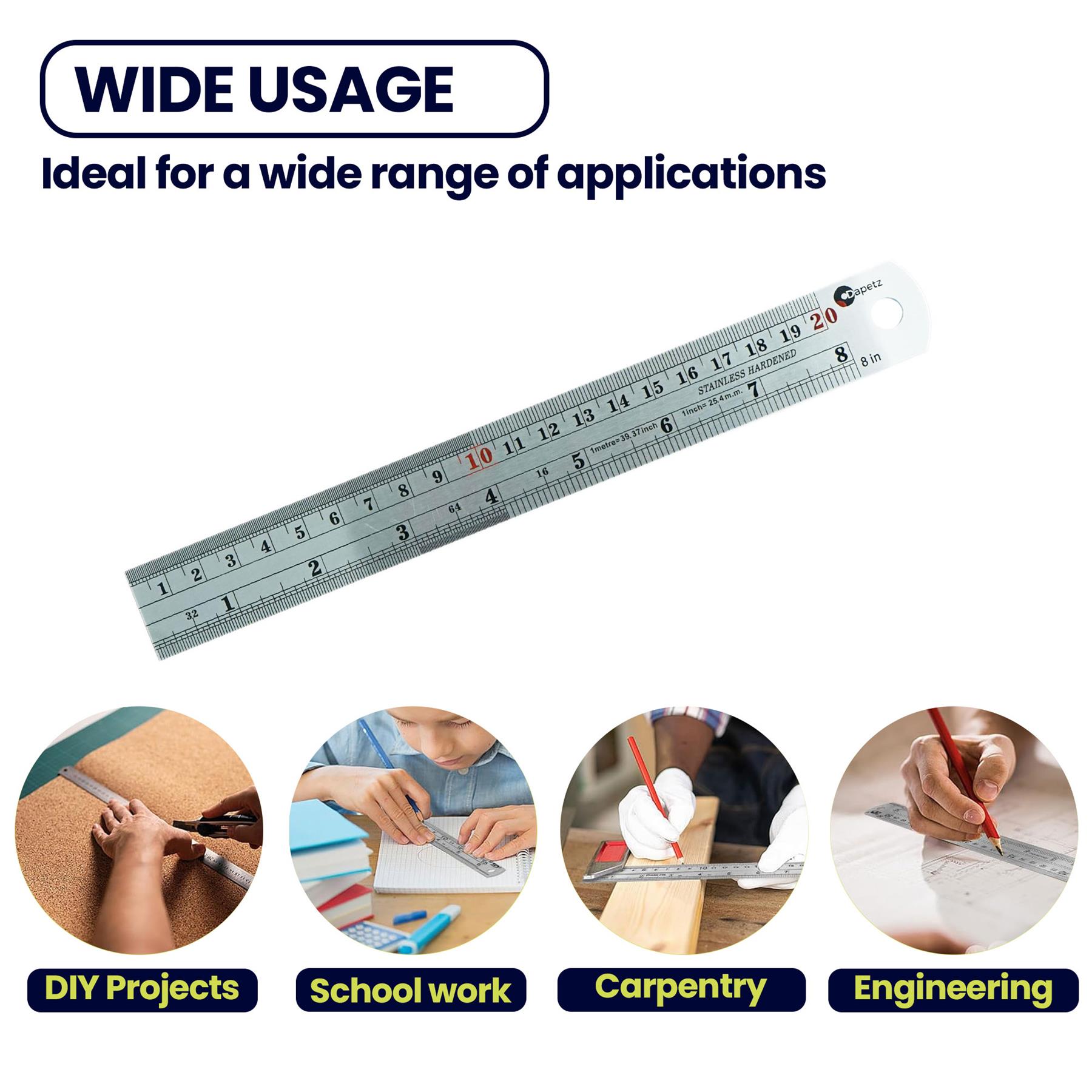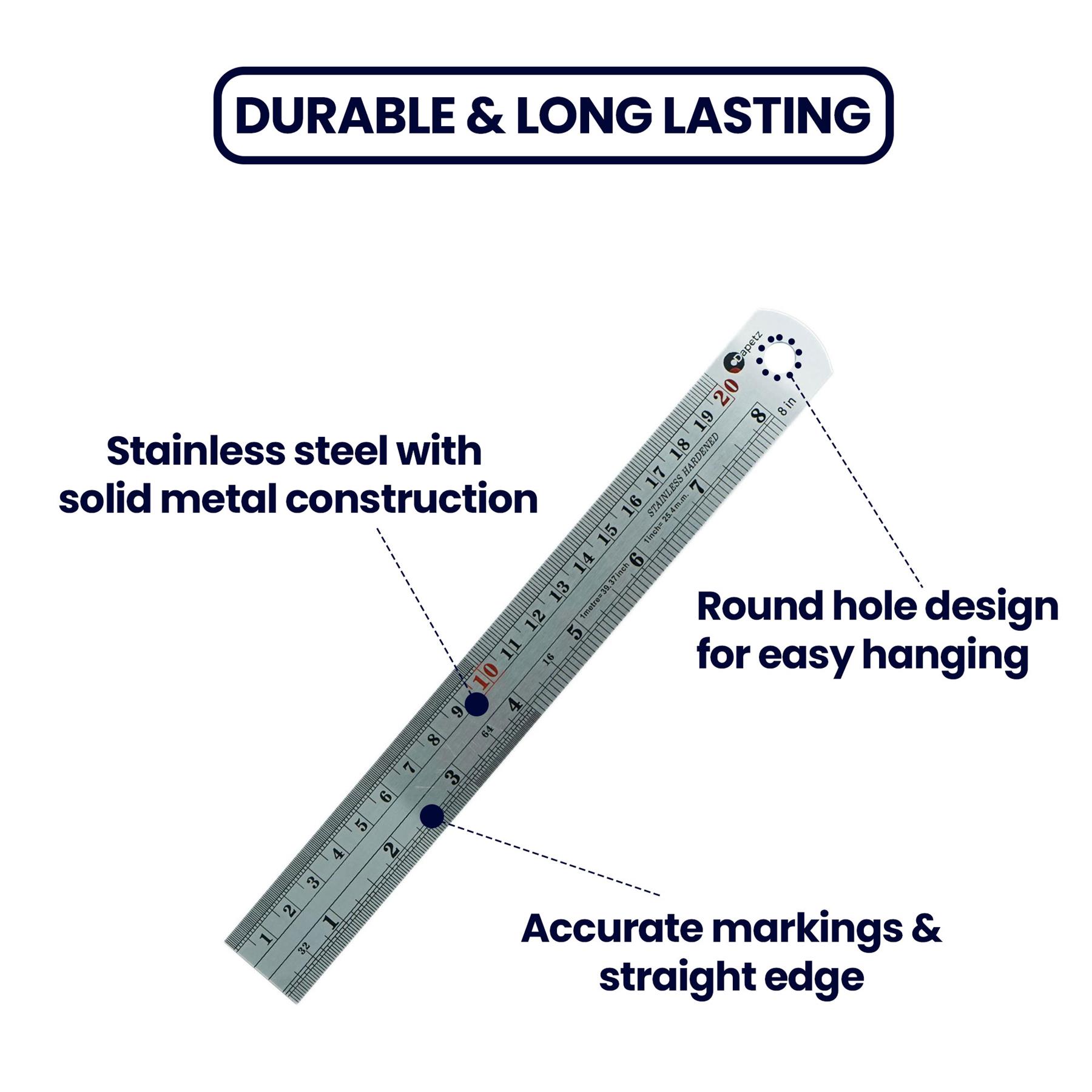 - Crafted from durable stainless steel, the ruler boasts a robust construction for Long-lasting use 8″ 20cm 200mm Stainless