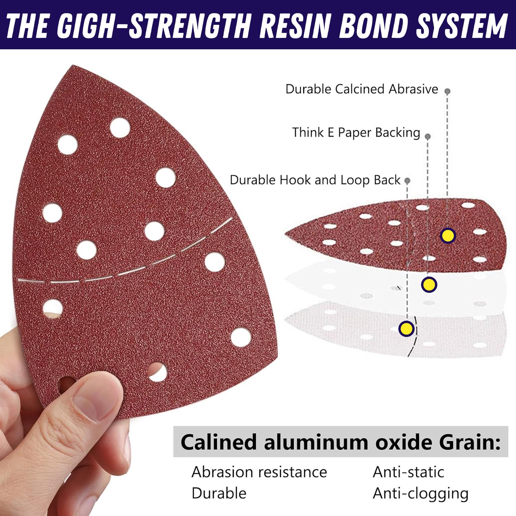 Multi Tool Triangle Sanding Pads 102x62mm 93mm 80 Grit Mouse Sandpaper Hook Loop 11 Hole Bosch