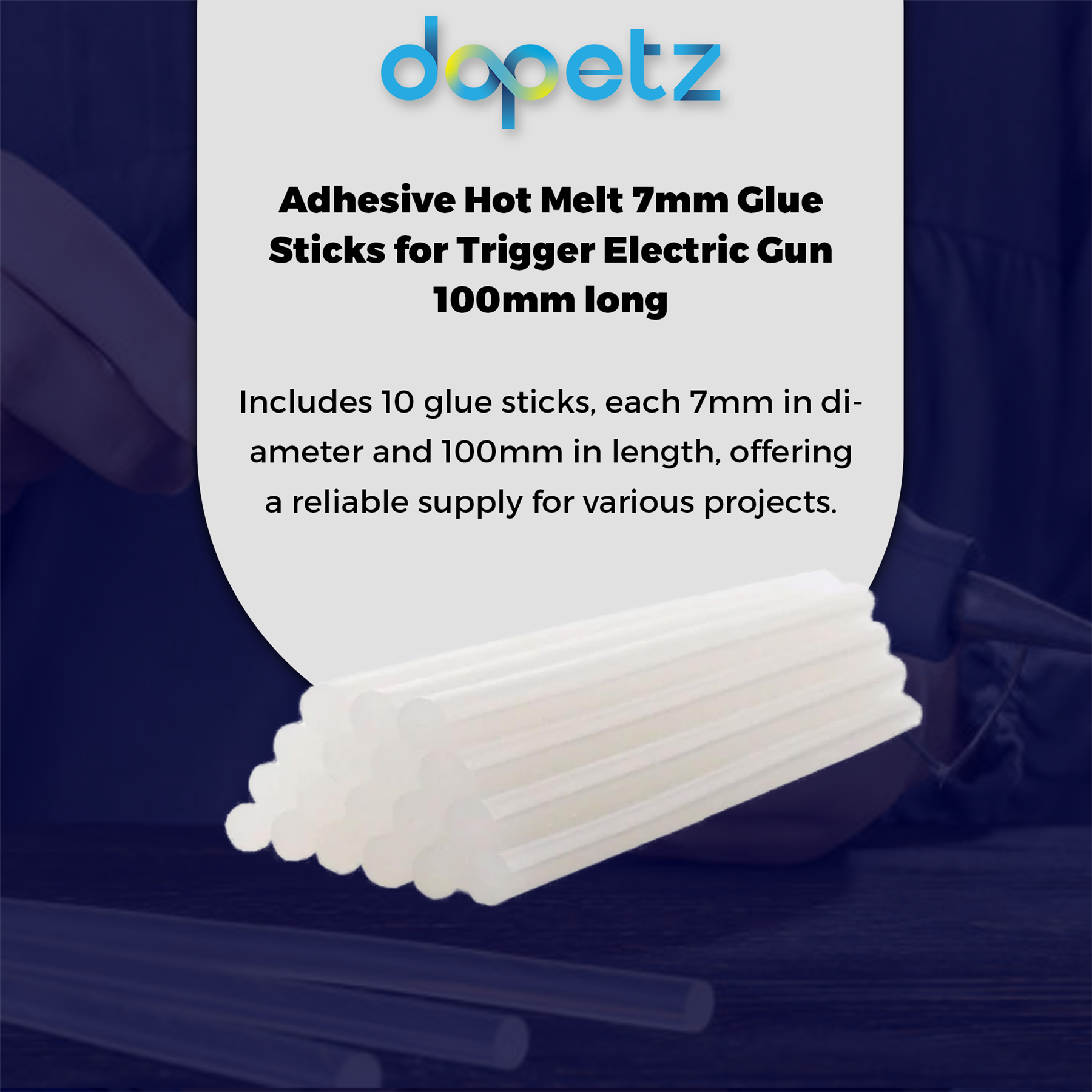10-Pack Glue Sticks: Includes 10 glue sticks, each measuring 7mm in diameter and 100mm in length, providing a reliable supply for multiple projects.
