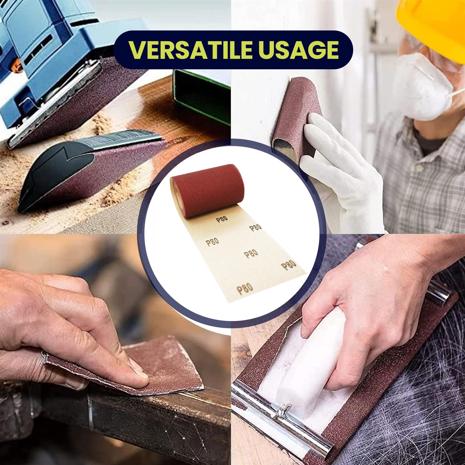 • Easy to Use Roll Format: Can be cut to required lengths and used with sanding blocks or tools as needed.