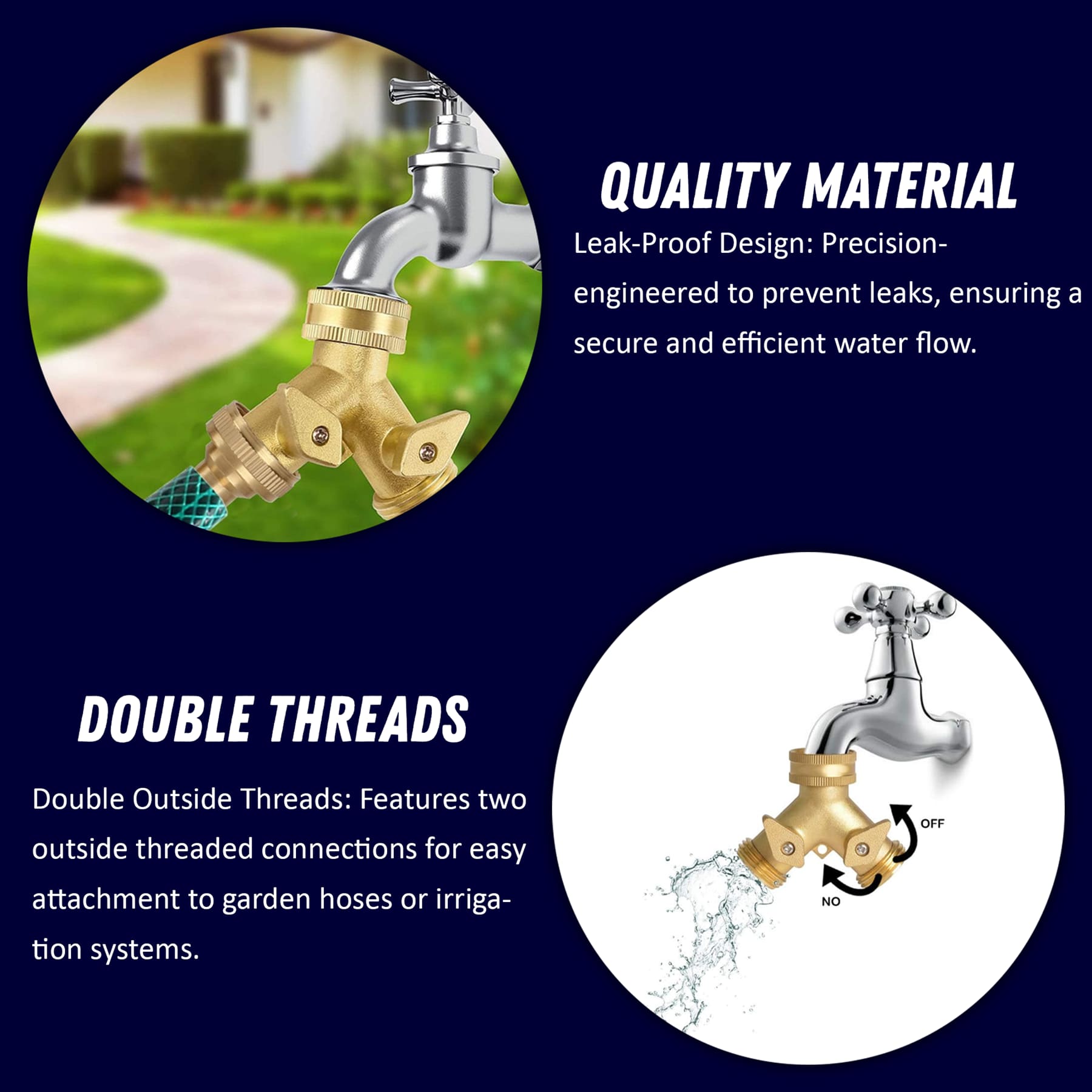 - Made from premium Brass Double Garden Tap provides a durable and long lasting option for various garden setups. Whether used as part of a decorative arrangement or for practical purposes like supporting climbing plants, the Brass Double Garden hose performs exceptionally well under all weather conditions.
