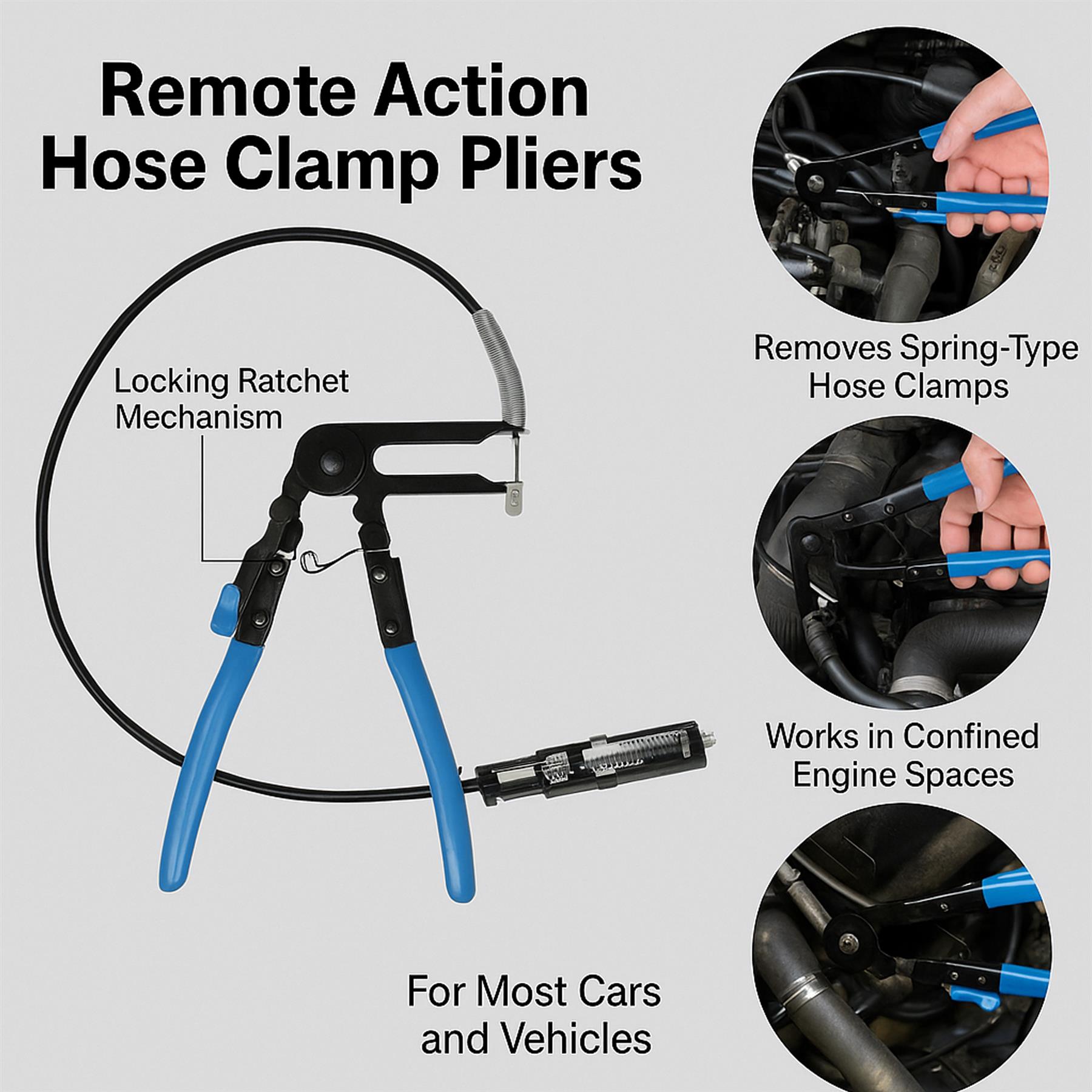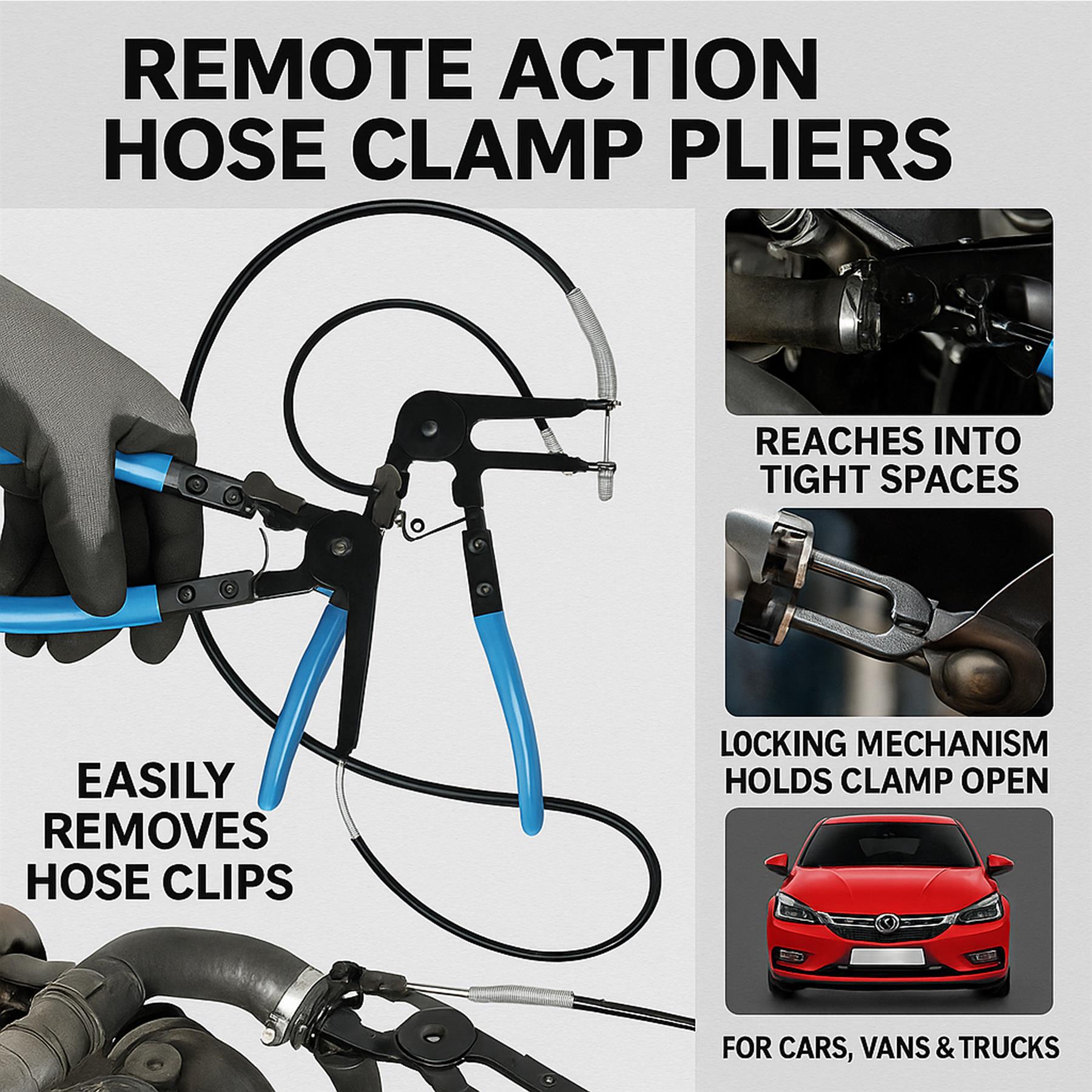 - The Remote Action Radiator Hose Clip perfect for removing hose clamps in tight spaces and hard-to-reach areas of vehicles,