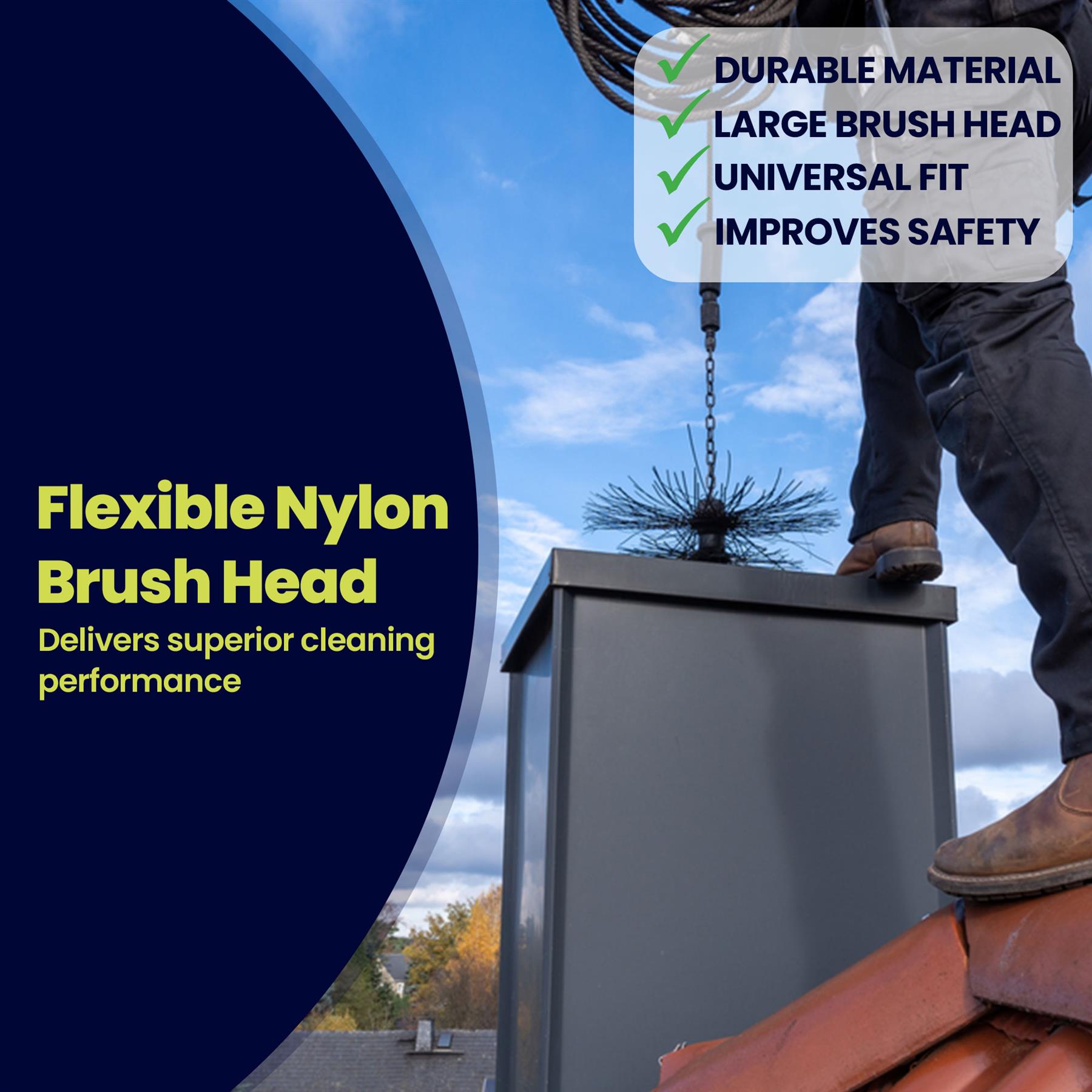 • Large Brush Head: Features a 400mm diameter chimney brush head, providing excellent coverage for efficient and thorough cleaning.