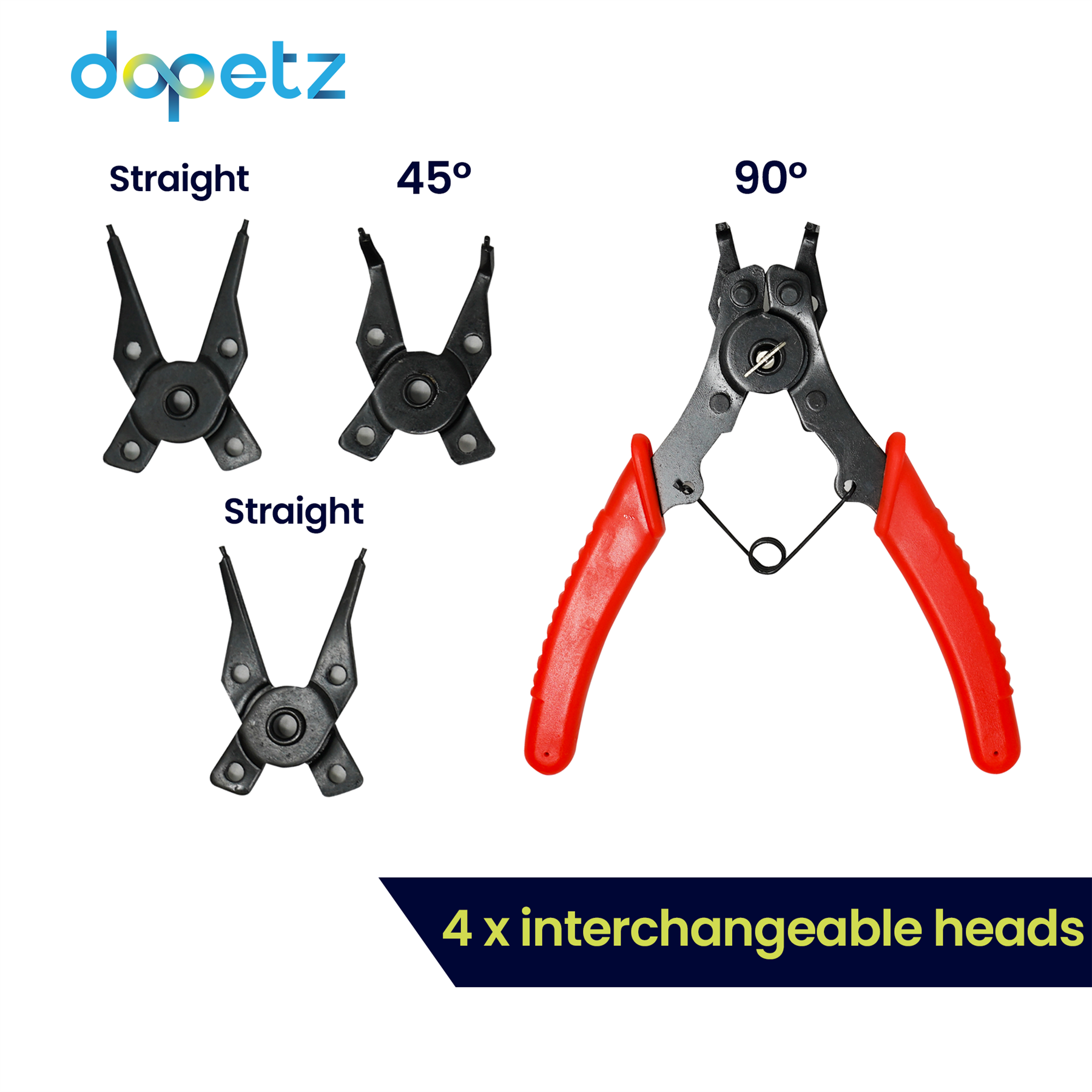 • Versatile Design: Includes 4 interchangeable heads for both internal and external snap rings, offering enhanced functionality for a wide range of tasks.