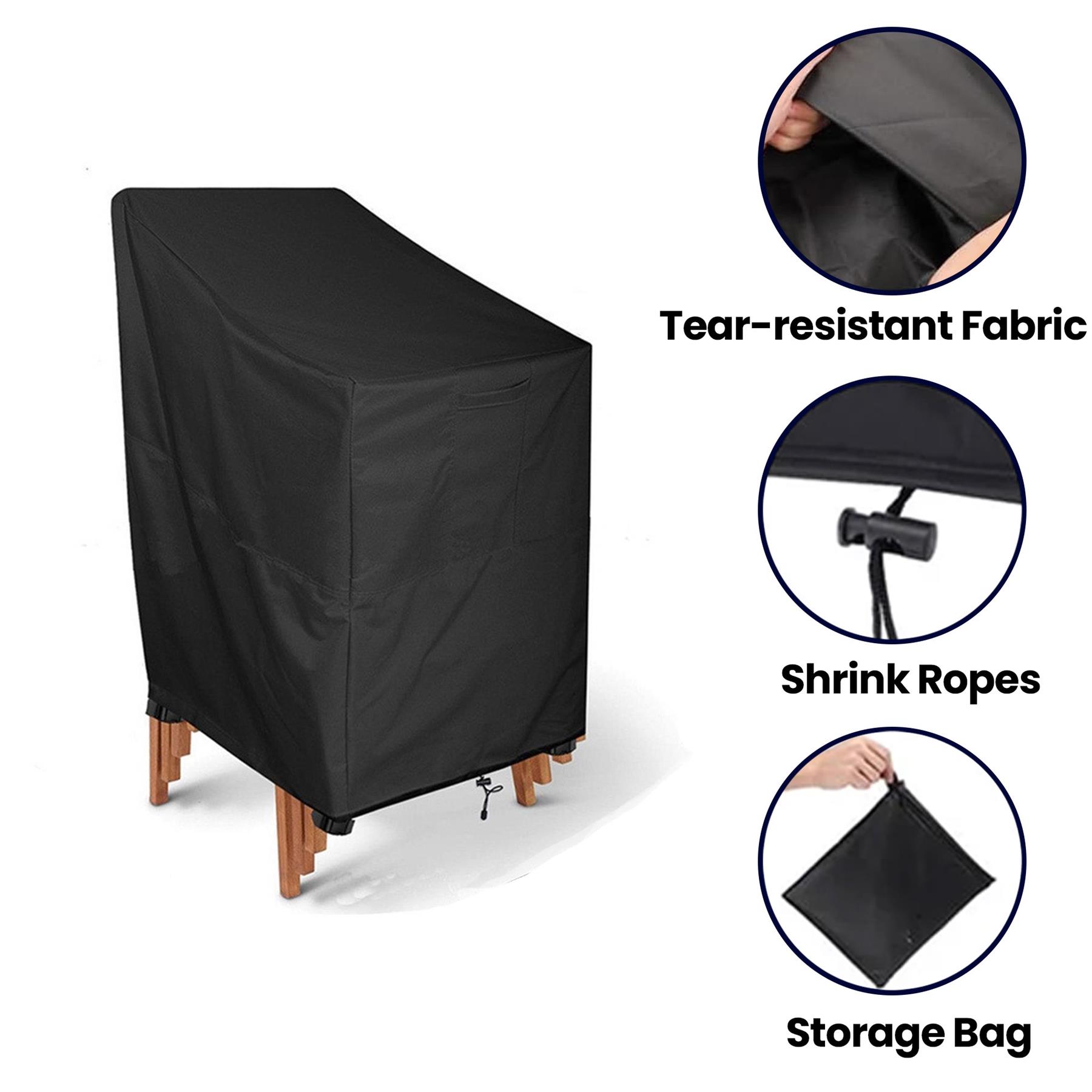 Add to cartGarden Stacking Chair Cover 420D Polyester Water Repellent UV Resistant Windproof Black 65x75x85/120cm