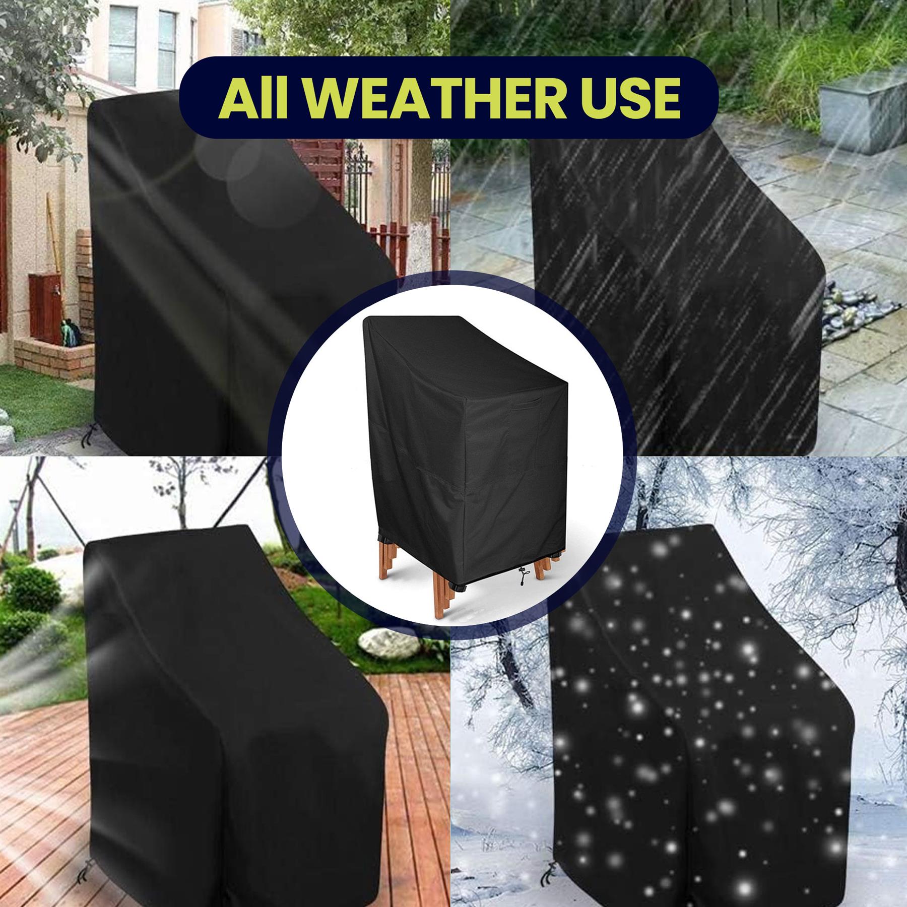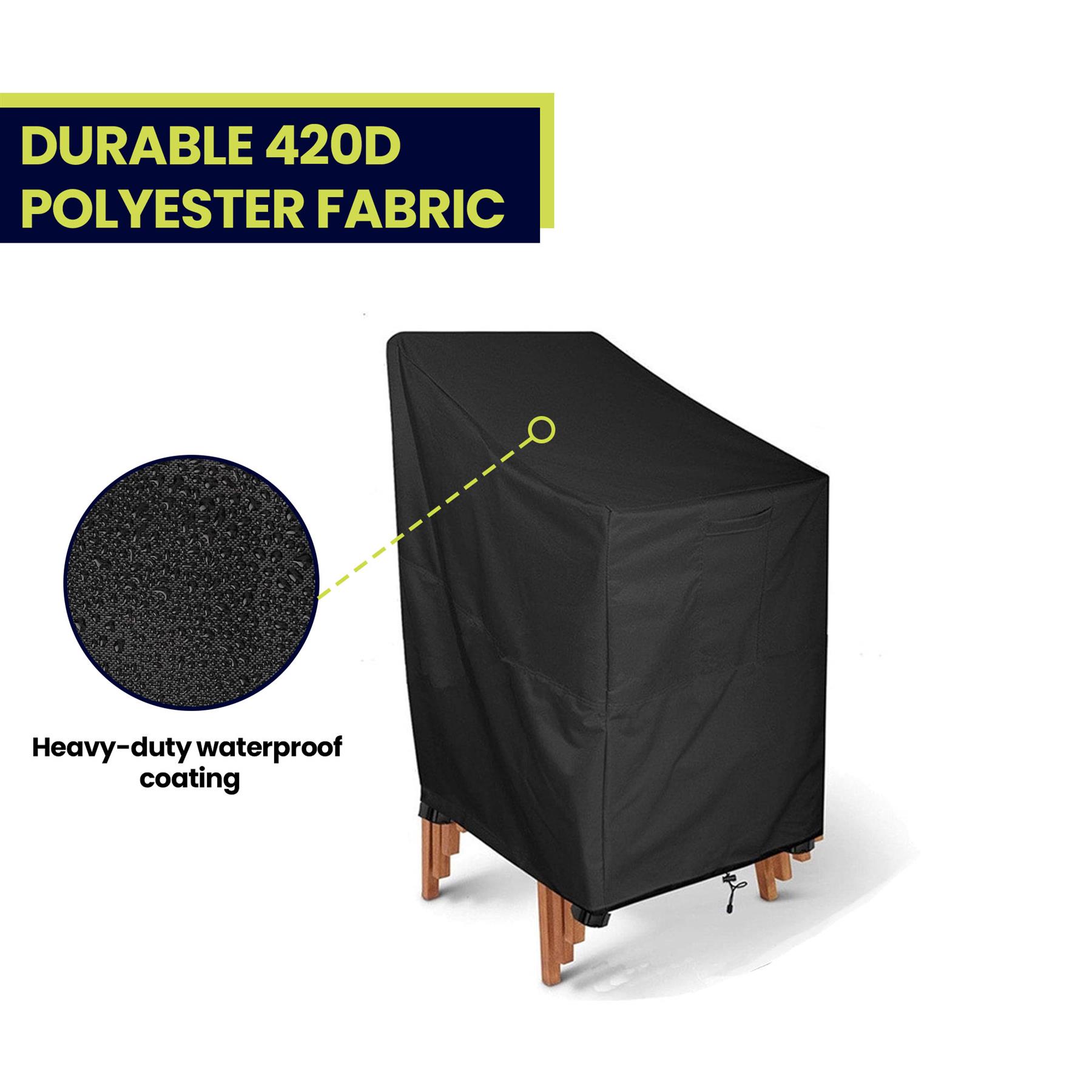 Garden Stacking Chair Cover 420D Polyester Water Repellent UV Resistant Windproof Black 65x75x85/120cm