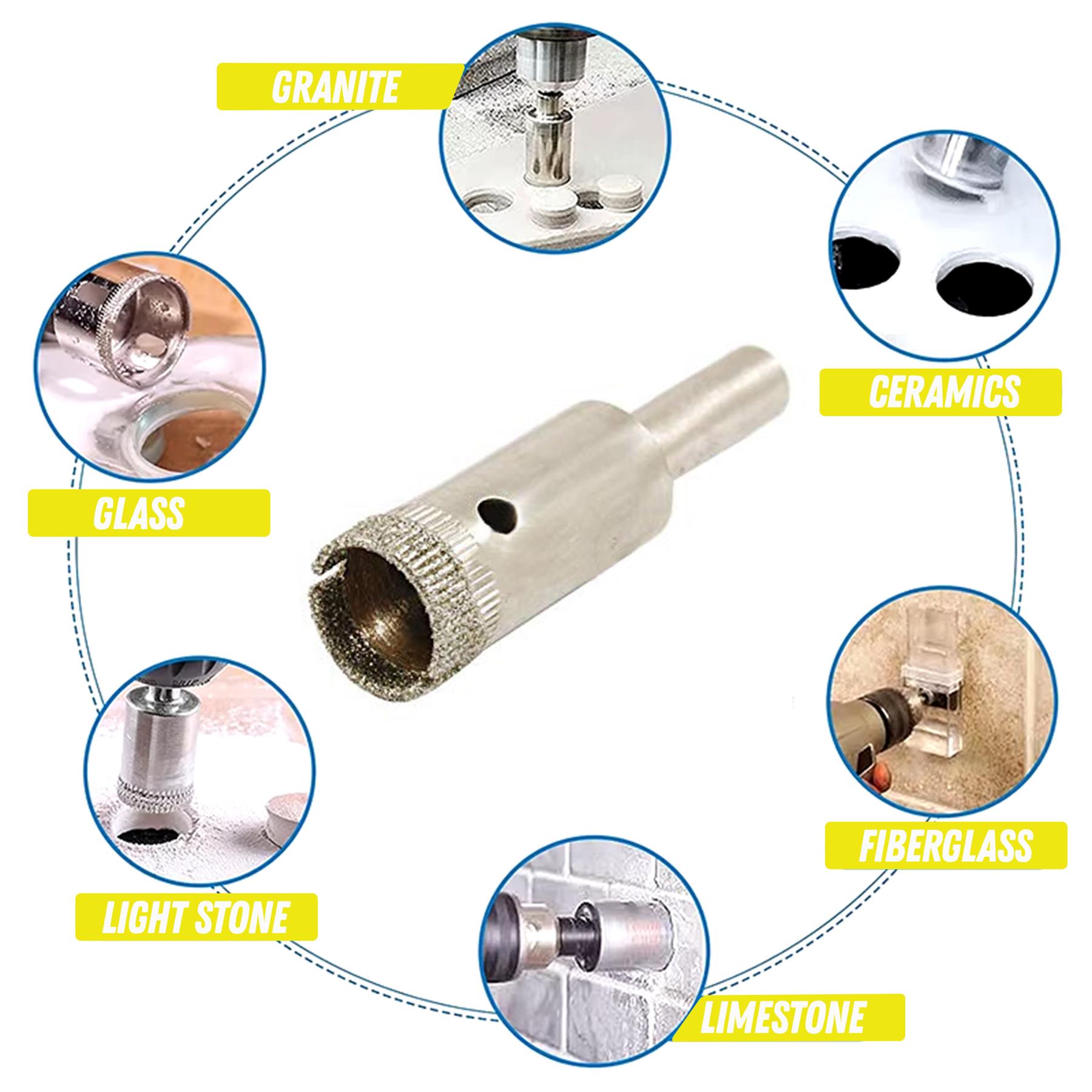 Versatile Application: Ideal for drilling neat, precise holes in ceramic tiles, glass, marble, granite, and porcelain.