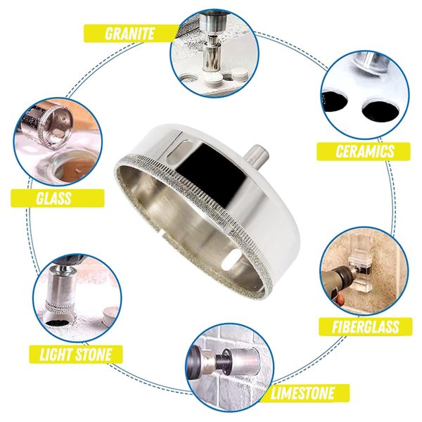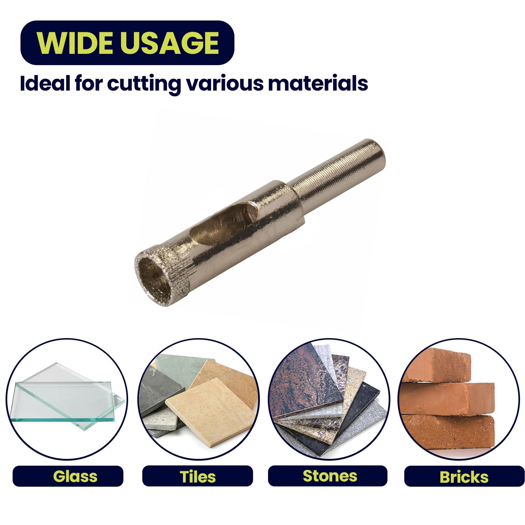Versatile Application: Ideal for drilling precise holes in hard materials such as ceramic tiles, glass, marble, granite, and porcelain.
