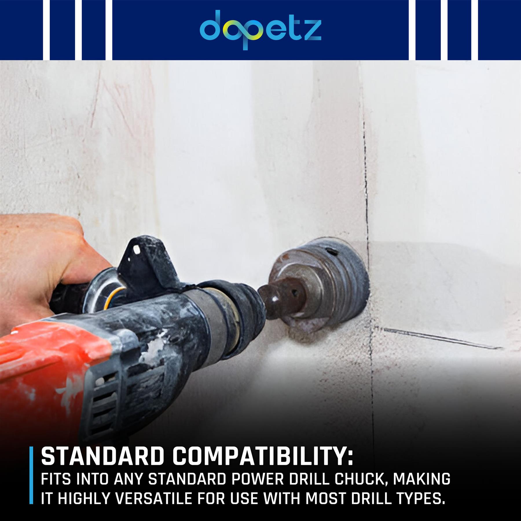 Standard Compatibility: Fits any standard power drill chuck, making it suitable for use with most drill types.