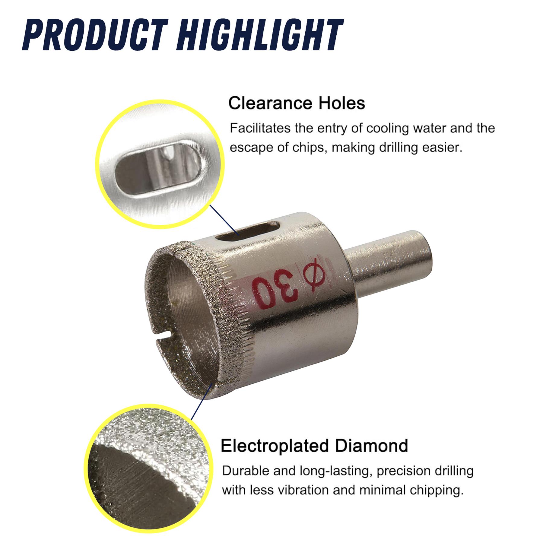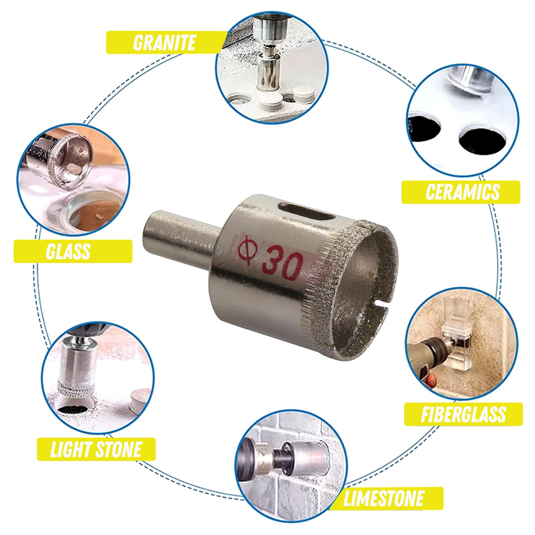 30mm Diamond Hole Saw Drill Bit Brazed Core Cutter for Tile, Porcelain, Glass, Marble and Ceramic