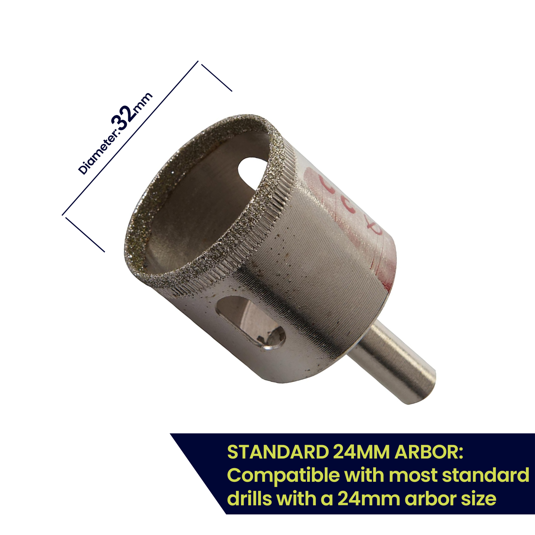 Diamond Hole Saw Drill Bit 32mm Brazed Core Cutter for Tile, Porcelain, Glass, Marble, Ceramic, Granite, Stone