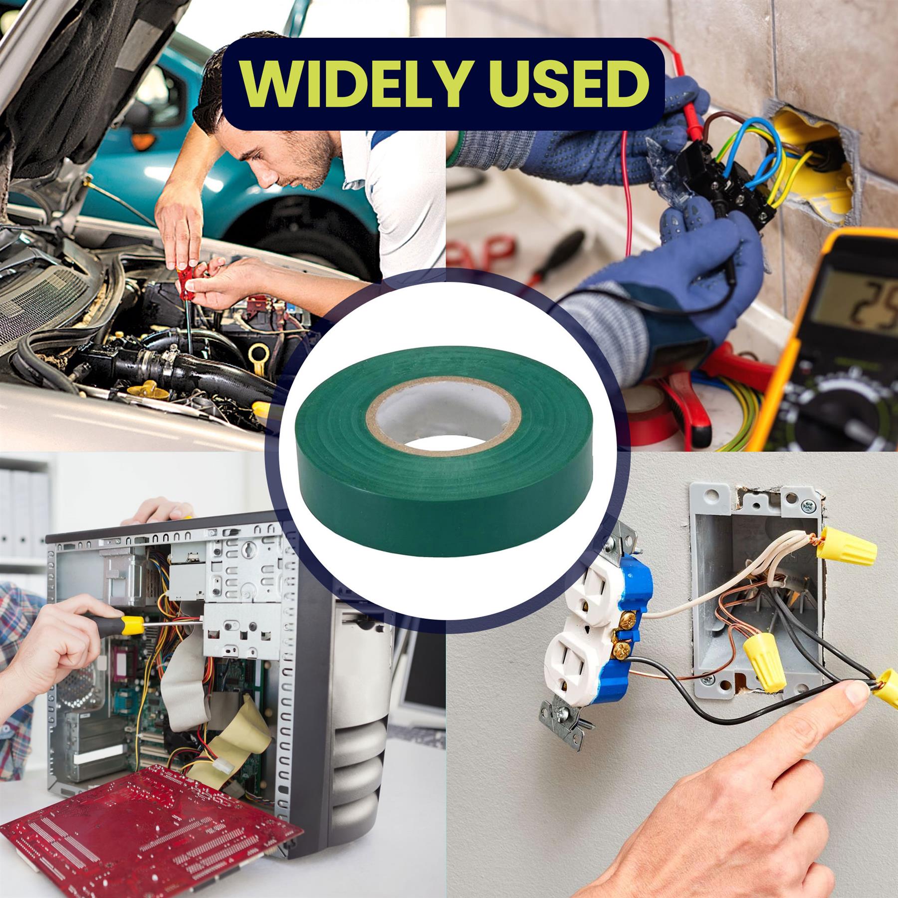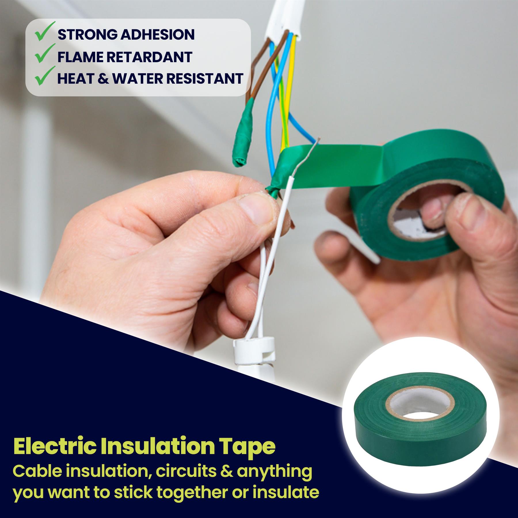- WIDE APPLICATION: Ideal for all wiring projects and repairs, our electrical tapes are perfect for circuits, cable insulation, wire bundling, and spliced wires. Suitable for daily electrical use at home, in the car, and for both indoor and outdoor applications.