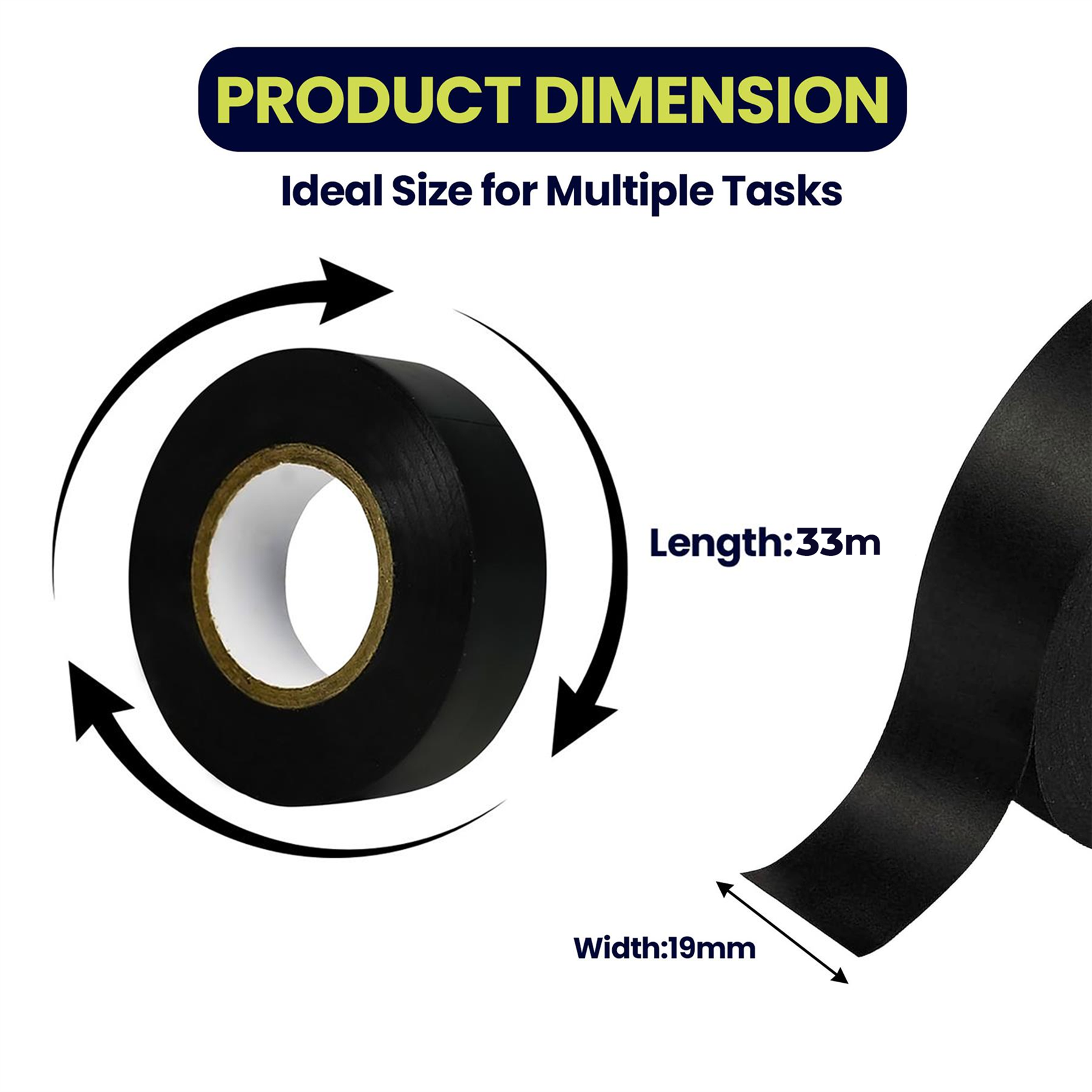 Package Contents: Includes 1 roll of 19mm x 33m PVC insulation tape.