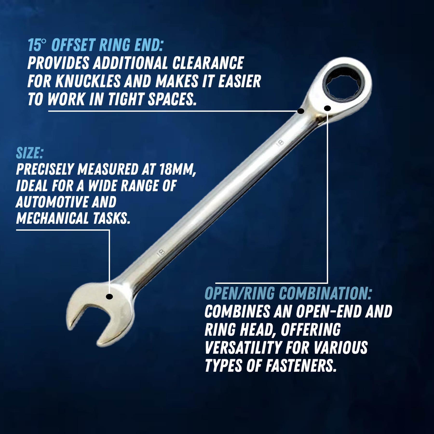 - Package: Includes 1 piece of 18mm ratchet spanner, ready for immediate use in fastening tasks.