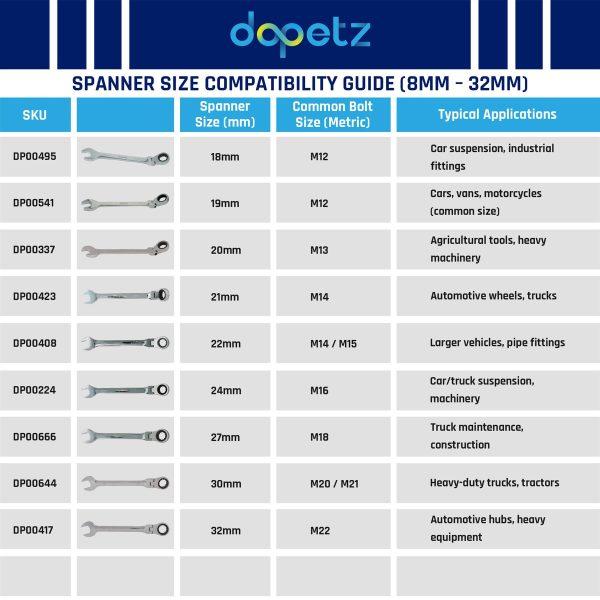 9mm Flexible Head Ratchet Spanner Metric Open-End & Ring Wrench Chrome Vanadium Steel for Tight Spaces