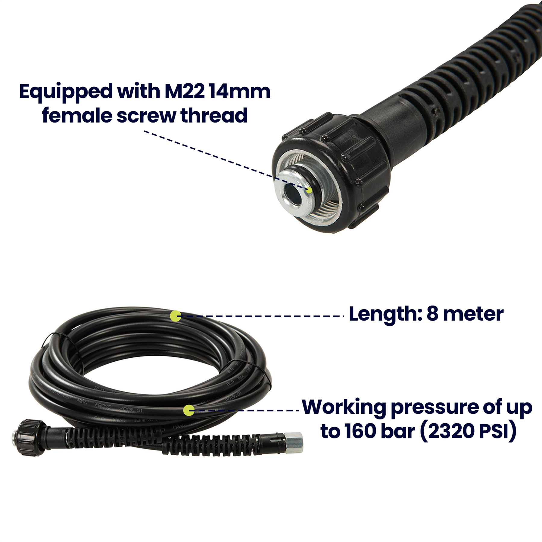 Heavy Duty High Pressure Washer Water Hose Jet Wash 8 Meter M22 Thread – 14mm