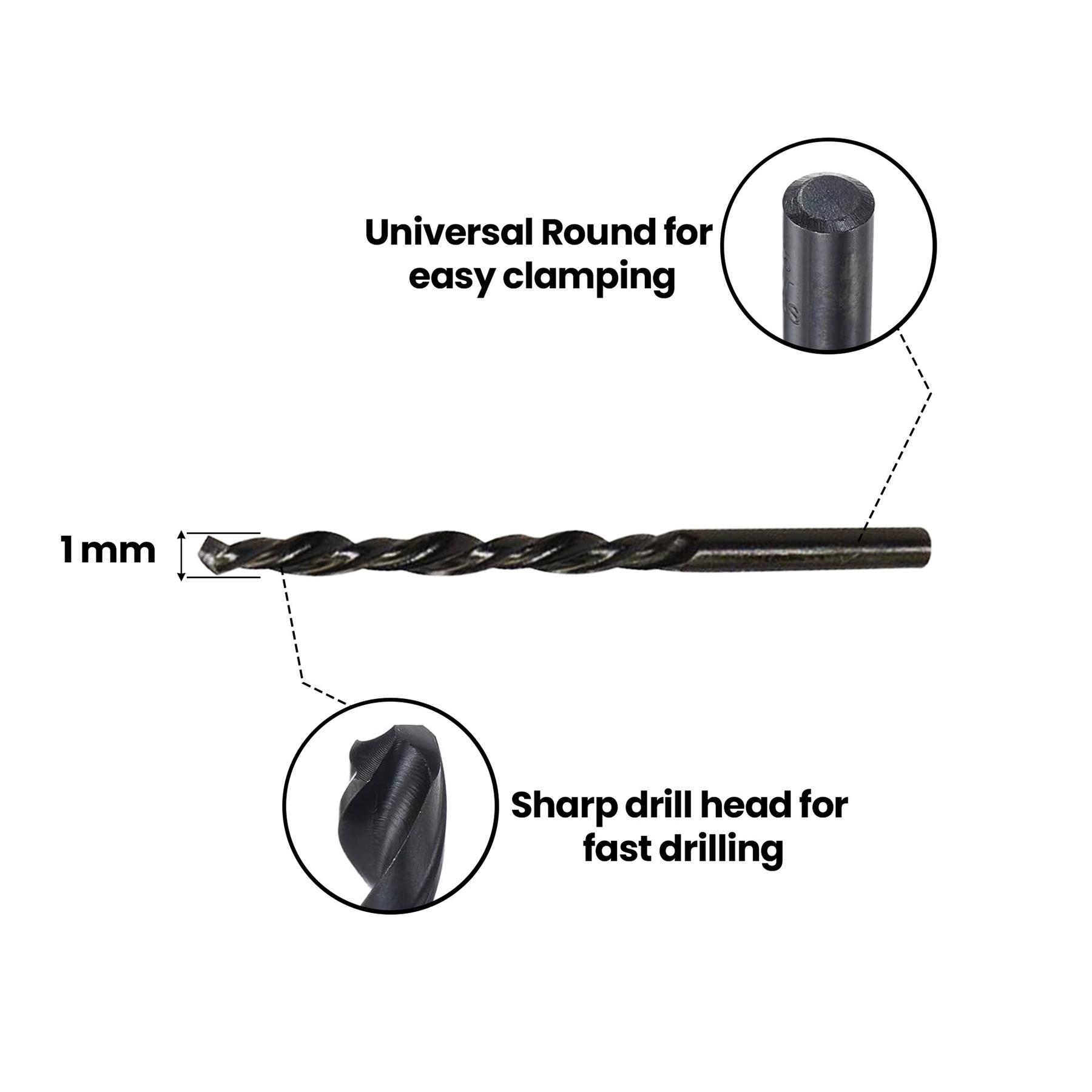 Fine Drill Size: 1mm diameter, ideal for detailed and high-precision drilling applications.