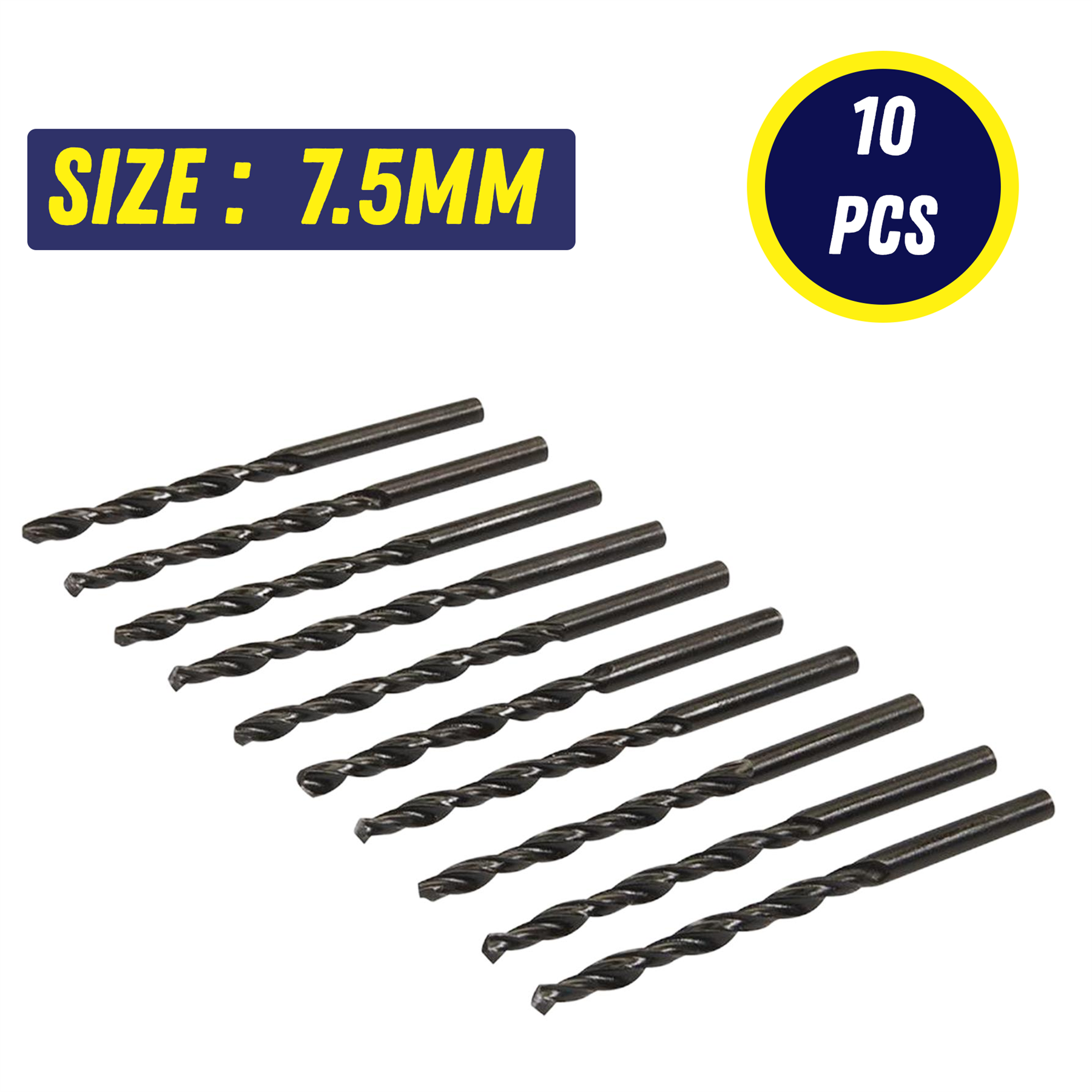 7.5mm HSS Twist Drill Bits – High-Speed Steel for Metal, Wood, Plastic & Aluminum 10PCS