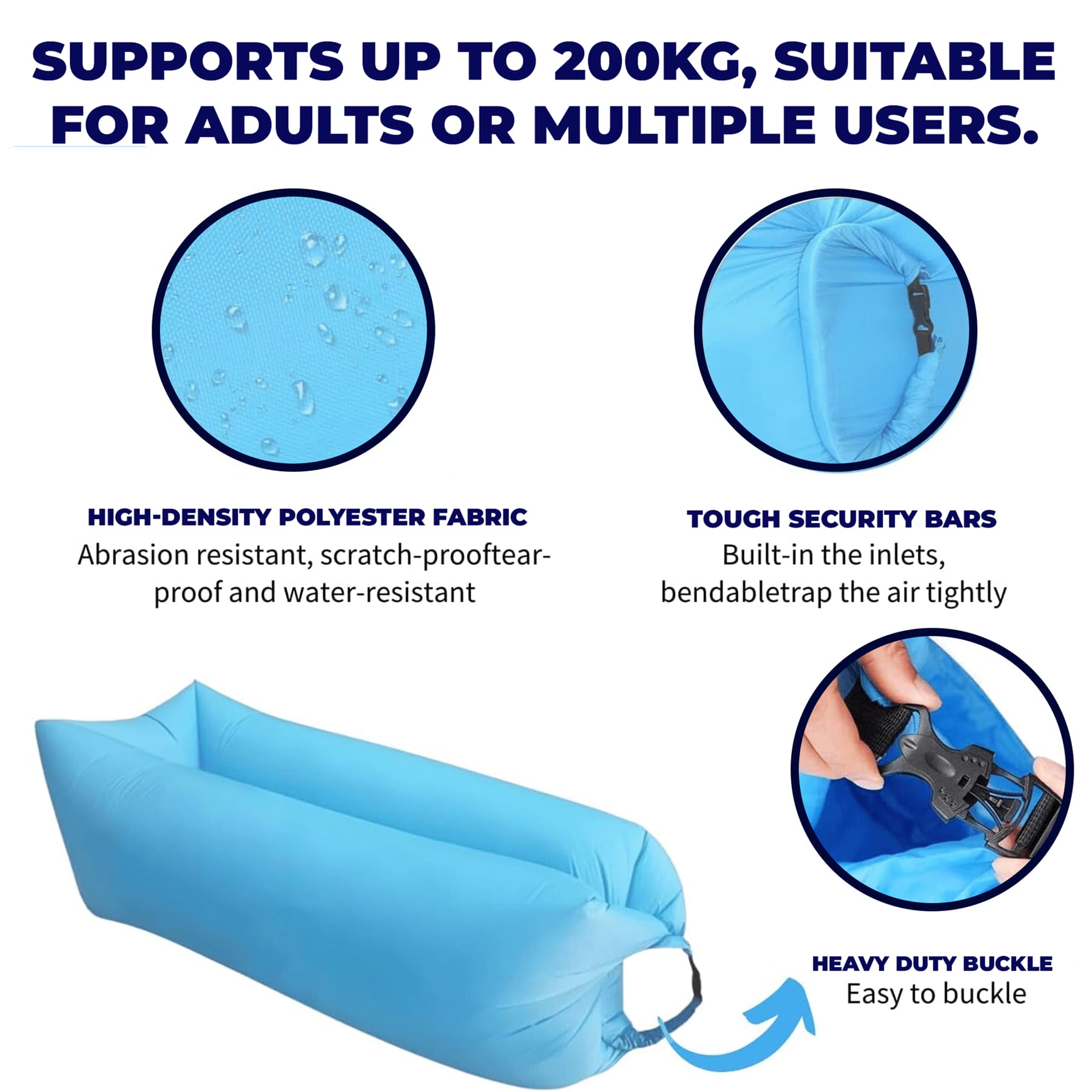 High Weight Capacity: Supports up to 200kg, suitable for adults or multiple users.