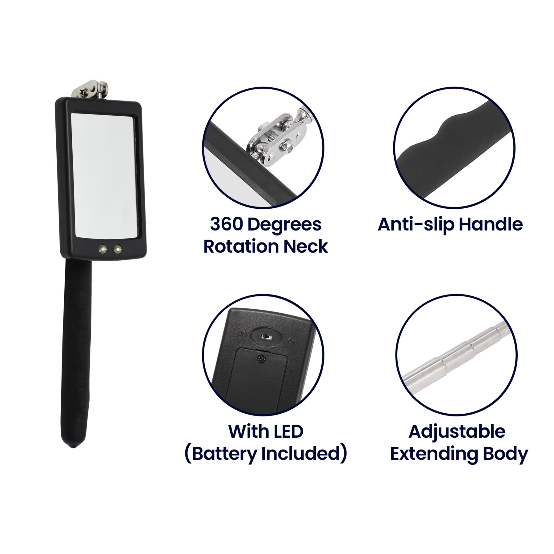 Telescopic Light Inspection Mirror With 2 Bright LED Grip Extends 29-87cm